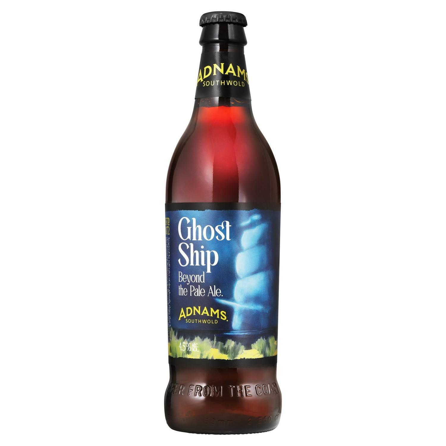 Enjoy whispers of aromatic elderflower, bold citrus flavours and warming rye spice. Ghost Ship 4.5% Pale Ale is inspired by tall tales of ghostly ships that haunted the shores of Walberswick. The seeds of these stories were likely sown by smuggles in a plot to keep the coast clear.