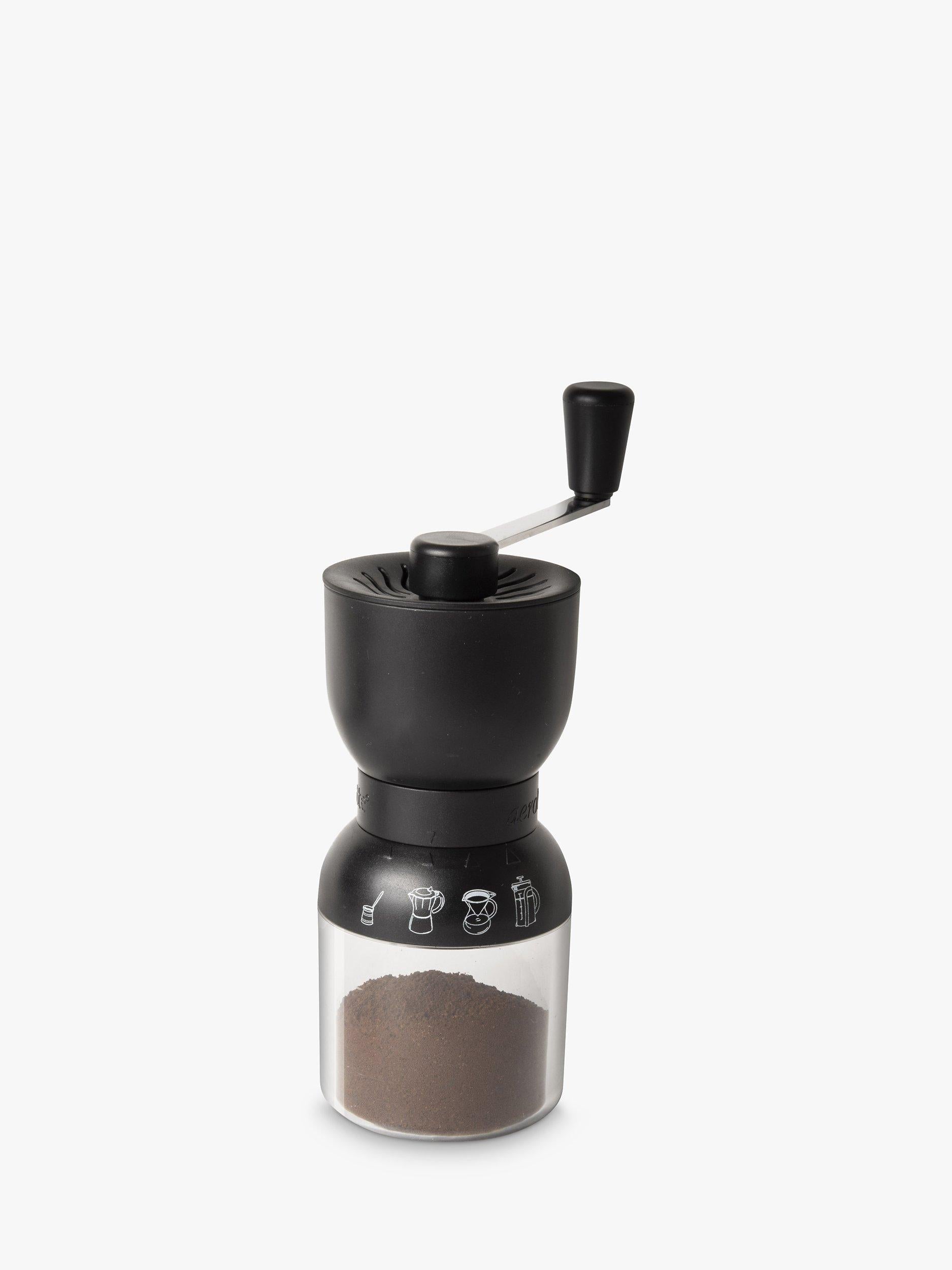 Easy-to-use, no-fuss coffee grinder from aerolatte. For the beginner through to expert, the grinder is easily adjustable with four pre-set course settings. Simply match your favourite coffee-making method with the selection on the collar of the grinder, add the beans and turn the handle.