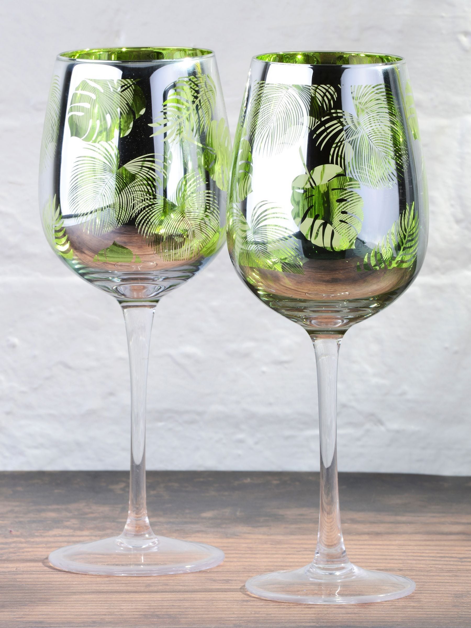 Decorated with Tropical leaves all the way around the bowl. Mouth Blown and hand crafted glass.