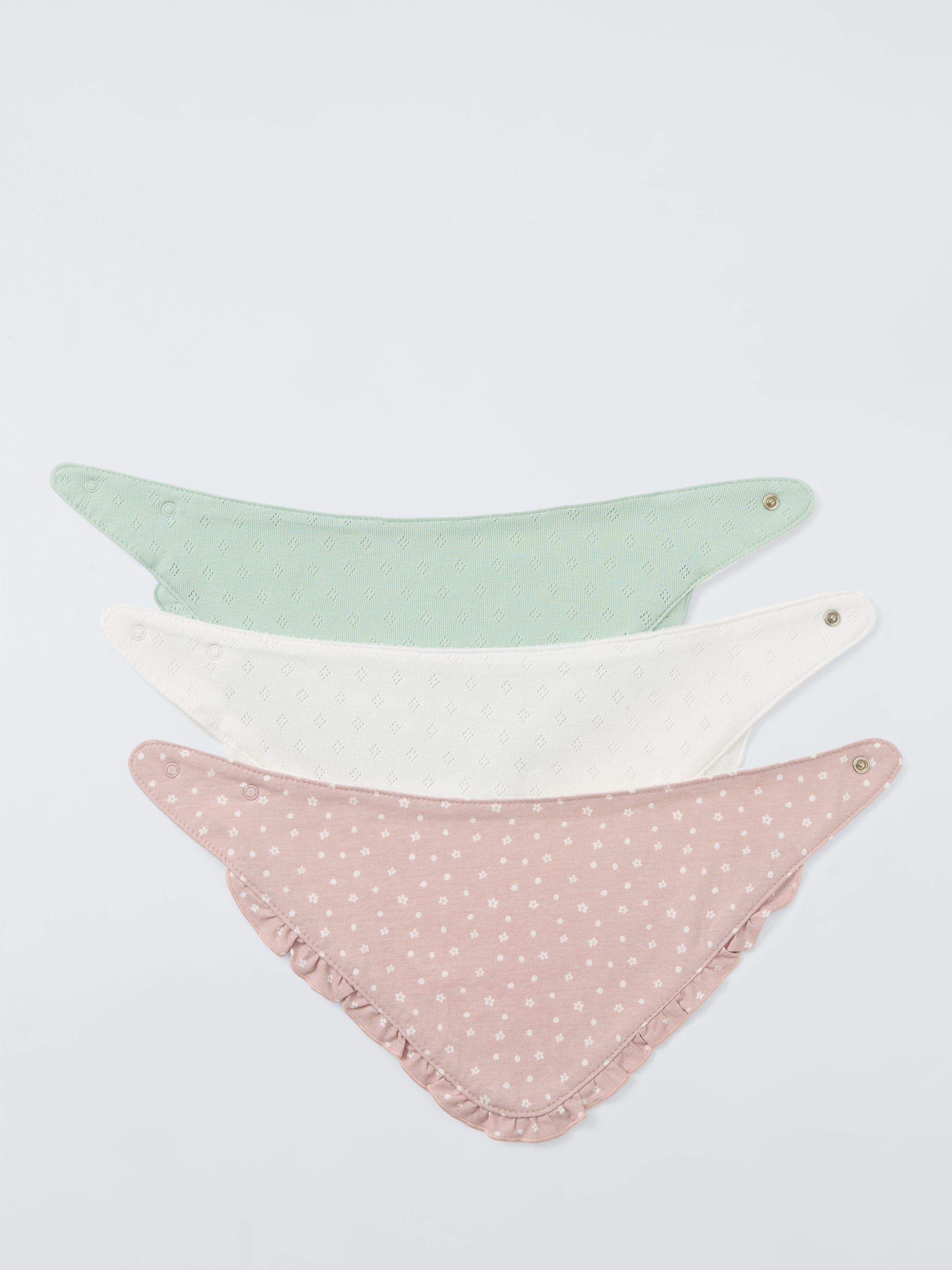 These bibs are made from soft absorbent cotton with an inner layer and terry towelling backing to keep baby as dry as possible. Perfect for teething and super droolers. The fresher colours and the pointelle designs add visual appeal to the practical style and only add to the cute factor for your baby.