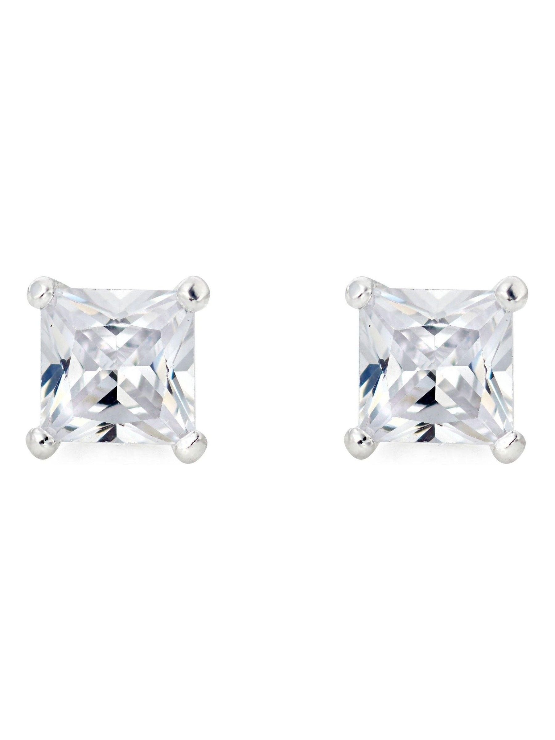 Destined to dazzle, add a touch of glamour to every occasion with this Silver Cubic Zirconia Earrings Set. Crafted in sterling silver. Earring size - 14mm. Earring width - 4mm.