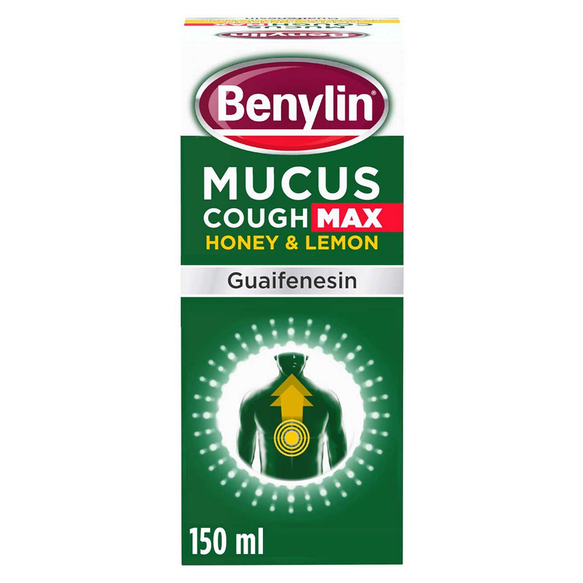 Benylin Mucus Husten Max Honig- & Zitronengeschmack 100 mg/5 ml Sirup hilft, produktive Husten zu lindern, indem er den Brustschleim (Sputum) verflüssigt und lockert, was das Abhusten erleichtert.