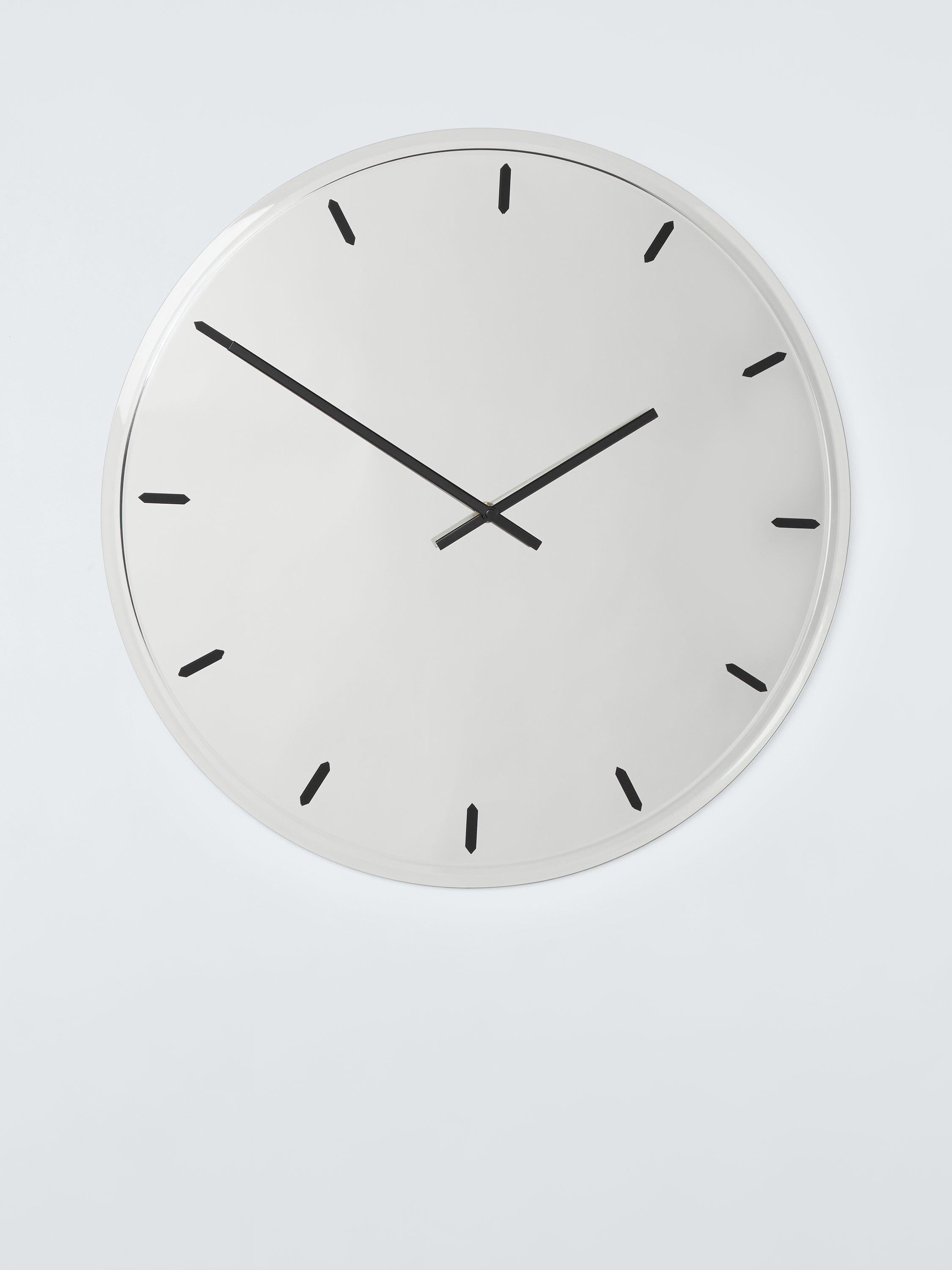 The John Lewis Bevel Glass Wall Clock, a substantial 50cm piece, brings a contemporary focus to your interior decor. Featuring linear hands and a protective glass lens, this analogue clock ensures excellent visibility across rooms. Clear Arabic numerals mark the hours, making time checking simple and highly accessible for daily use.