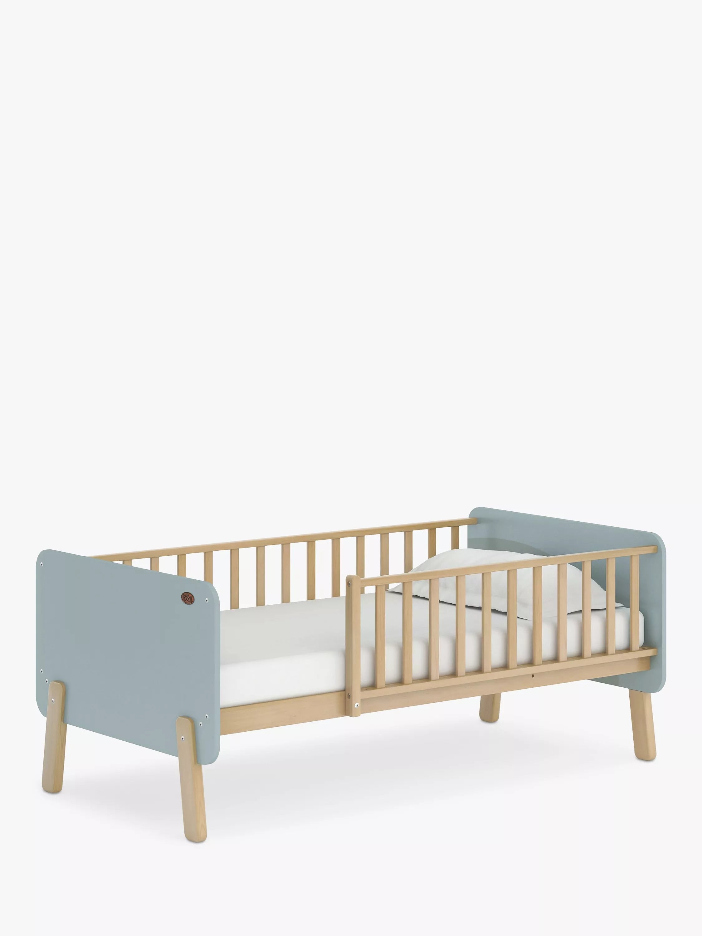 This modern bed boasts a sleek two-tone design with rounded corners and playful angled feet, adding a contemporary touch to any nursery or bedroom. Whether used with the sides for a secure and cosy toddler bed experience or conveniently positioned alongside the parents' bed for added comfort, the Boori Natty Bedside Bed is the perfect choice for both style and practicality. The breathable pocket spring bedside bed mattress features high-density pocket springs to provide optimum support and is made free from chemicals in the UK.
