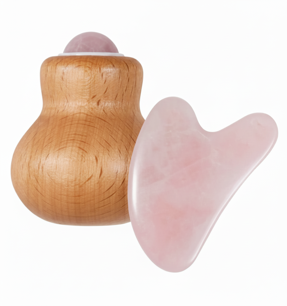 This Botanics Accessories Bundle features a beautiful Gua Sha stone crafted from natural rose quartz. It is complemented by a unique wooden handle component, ensuring a premium feel for your skincare routine. The set supports facial massage, traditionally used to help encourage circulation and relieve muscle tension.