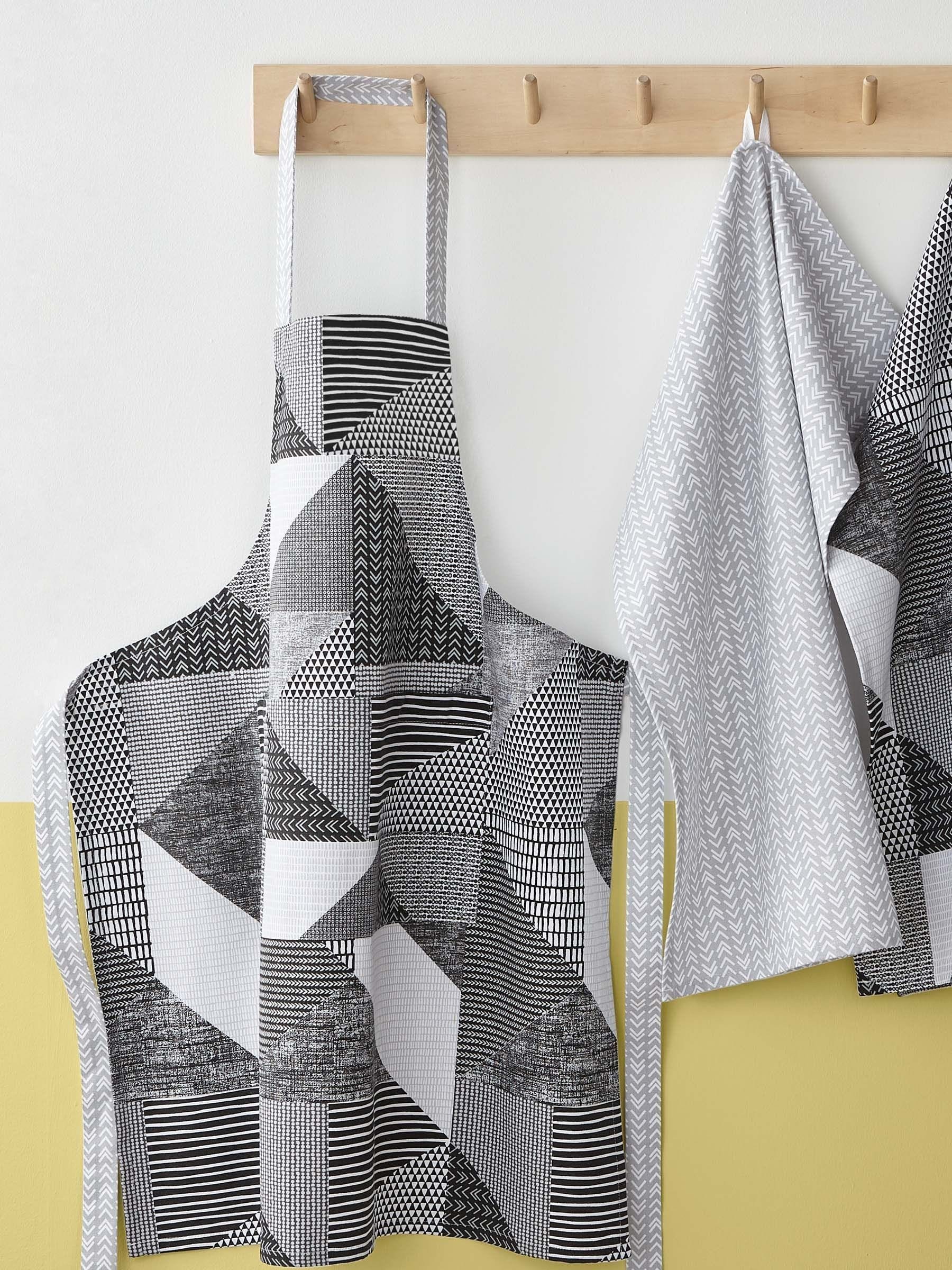 Inspired by the familiar art trend, mark-making, this Grey Larsson Geo apron is bold and contemporary and makes the perfect practical addition to your kitchen accessories.