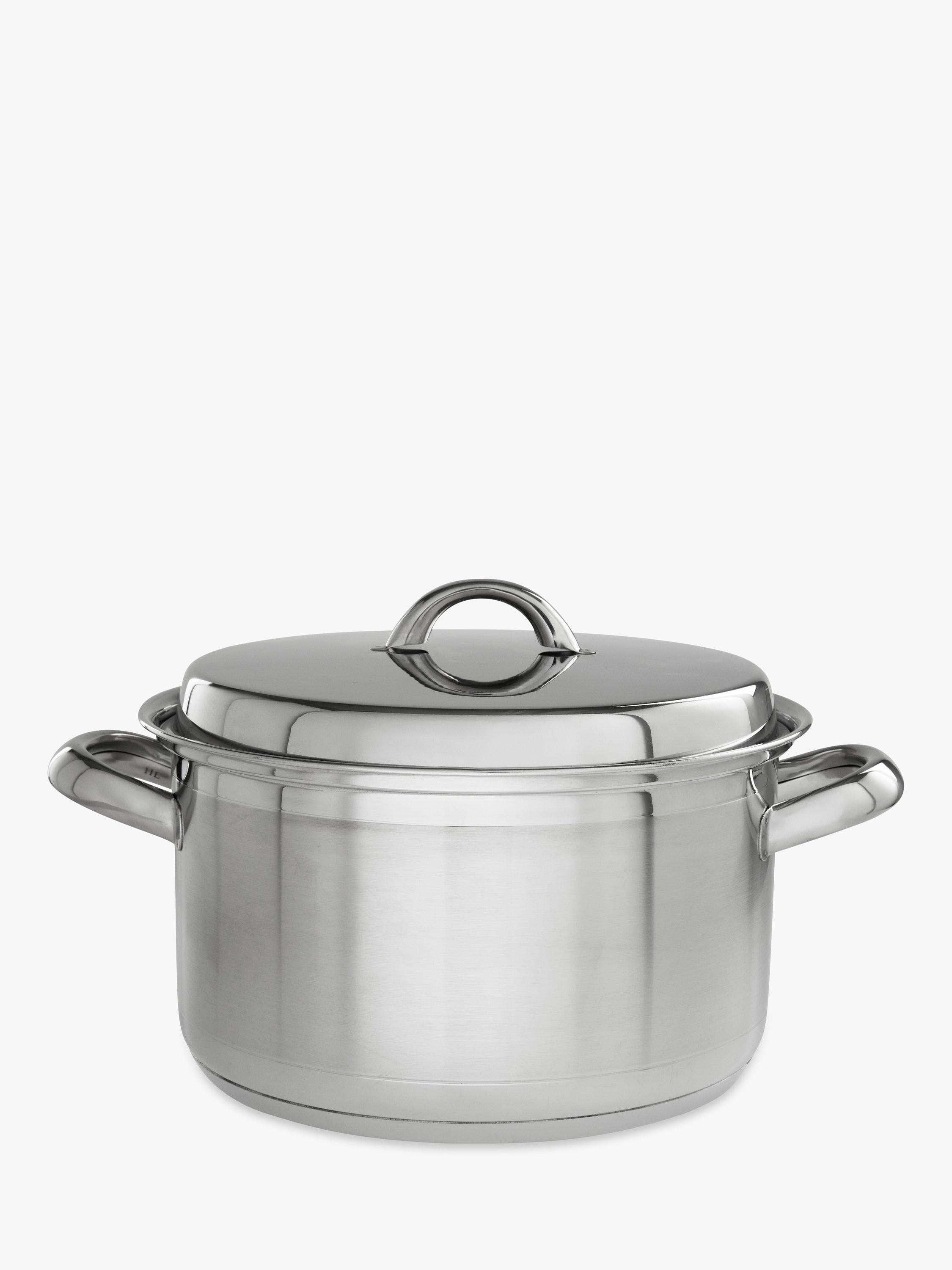 John Lewis offers this Classic Stainless Steel Lidded Casserole, sized at 24cm with a useful 5L capacity for versatile cooking. This robust piece of kitchen cookware utilises premium 18/10 stainless steel, guaranteeing excellent, even heat distribution for consistent results every time. The construction ensures this pan is highly corrosion-resistant, built for durability and long service in your home.