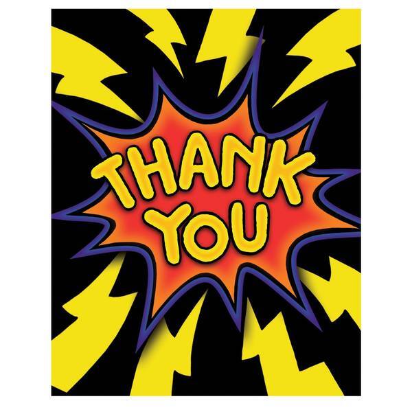 This set from Creative Party supplies eight individual thank you cards for your correspondence requirements. Each card showcases a distinctive 3D effect, specifically featuring a prominent lightning bolt text design. These stationery items provide a memorable and visually engaging way to convey sincere appreciation after any gathering or special occasion.
