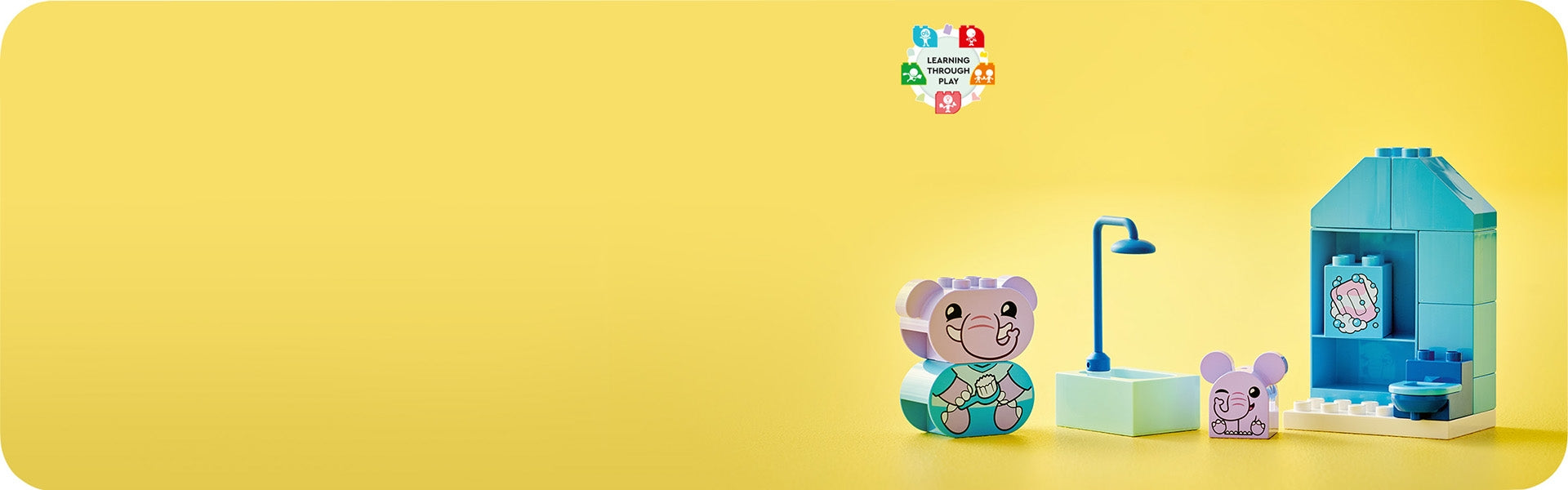 Help preschoolers aged 18 months and up understand their feelings around washing with the My First Daily Routines: Bath Time (10413) learning toy for toddlers. This animal playset comes with 2 elephant toys – a parent and a baby – and a bath, shower and toilet. Parents and preschool kids join their new LEGO® DUPLO® animal friends in the bathroom, enjoying the fun role-play of getting the baby clean while exploring the importance of washing routines.