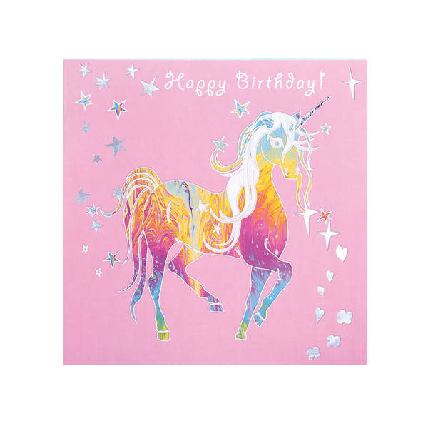 hand illustrated unicorn themed greetings card sparkly design blank inside individually wrapped in cellophane ideal for unicorn lovers