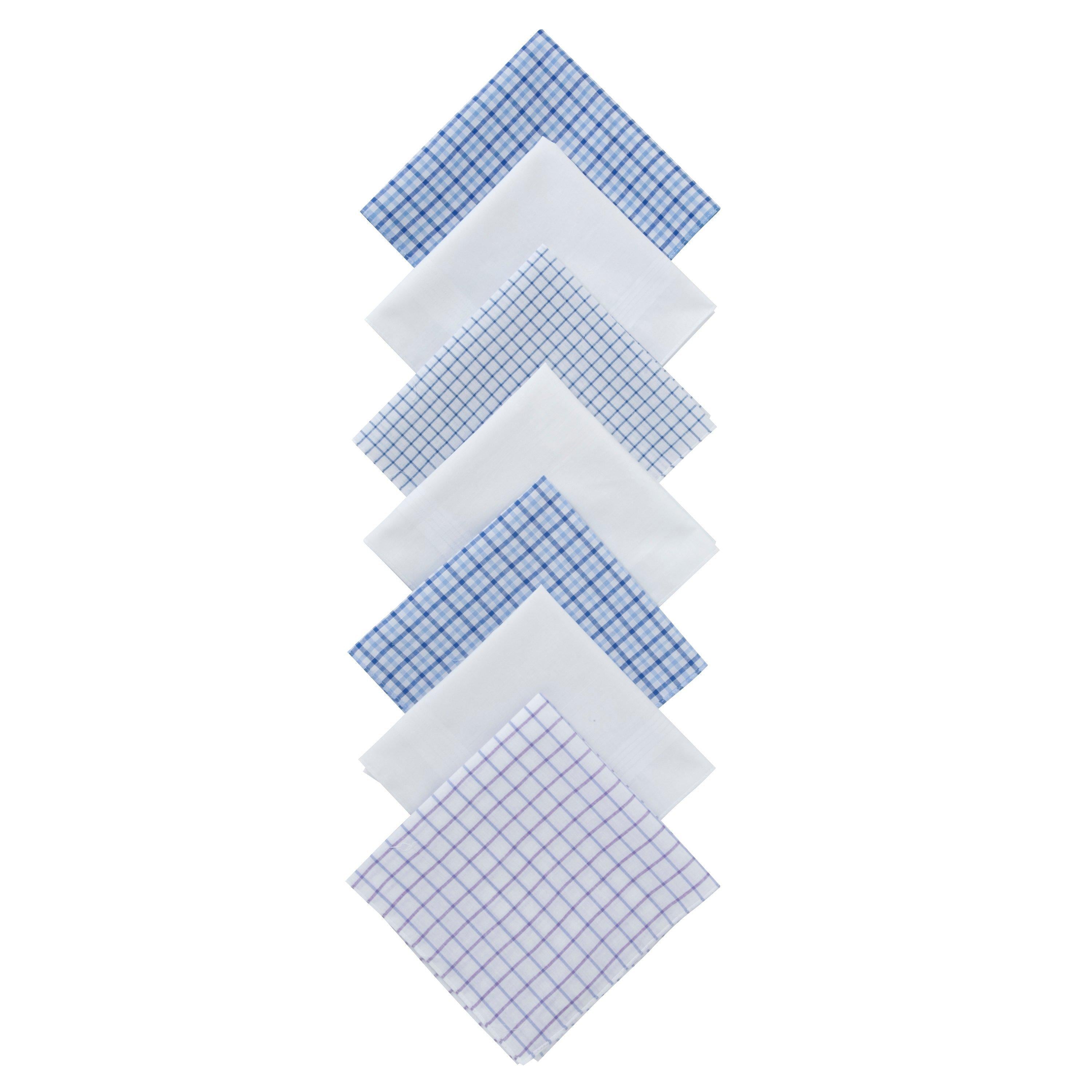 This pack contains 7 handkerchiefs to allow you to stock up in one go. This pack contains 3 plain white handkerchiefs and 4 checked ones in shades of blue to add variety to your collection.