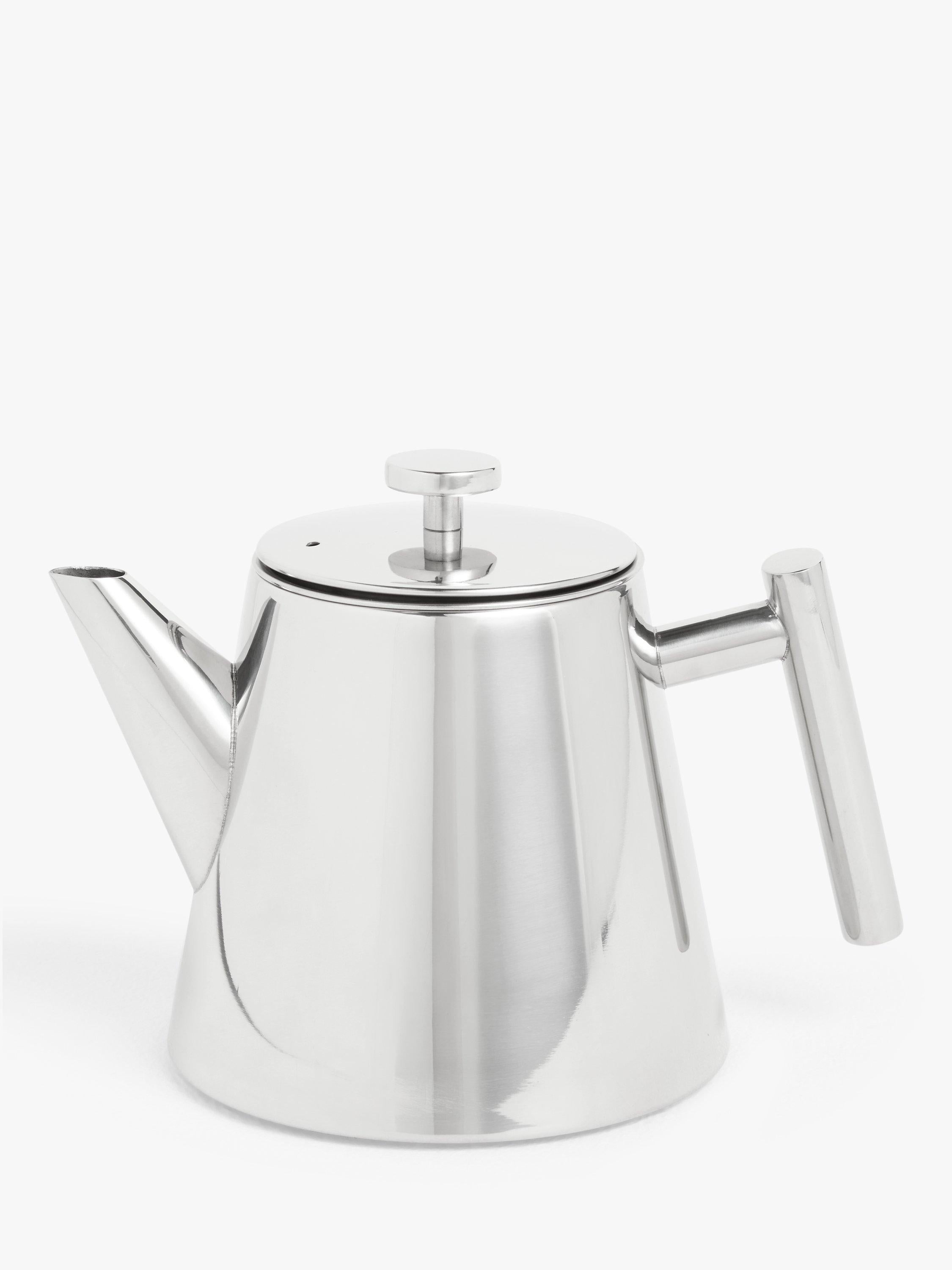 John Lewis presents this 1.1L double-walled teapot, crafted from durable stainless steel for excellent temperature retention. It features a removable infuser, making it ideal for brewing loose-leaf or herbal teas effortlessly and ensuring your favourite brew stays warm longer.