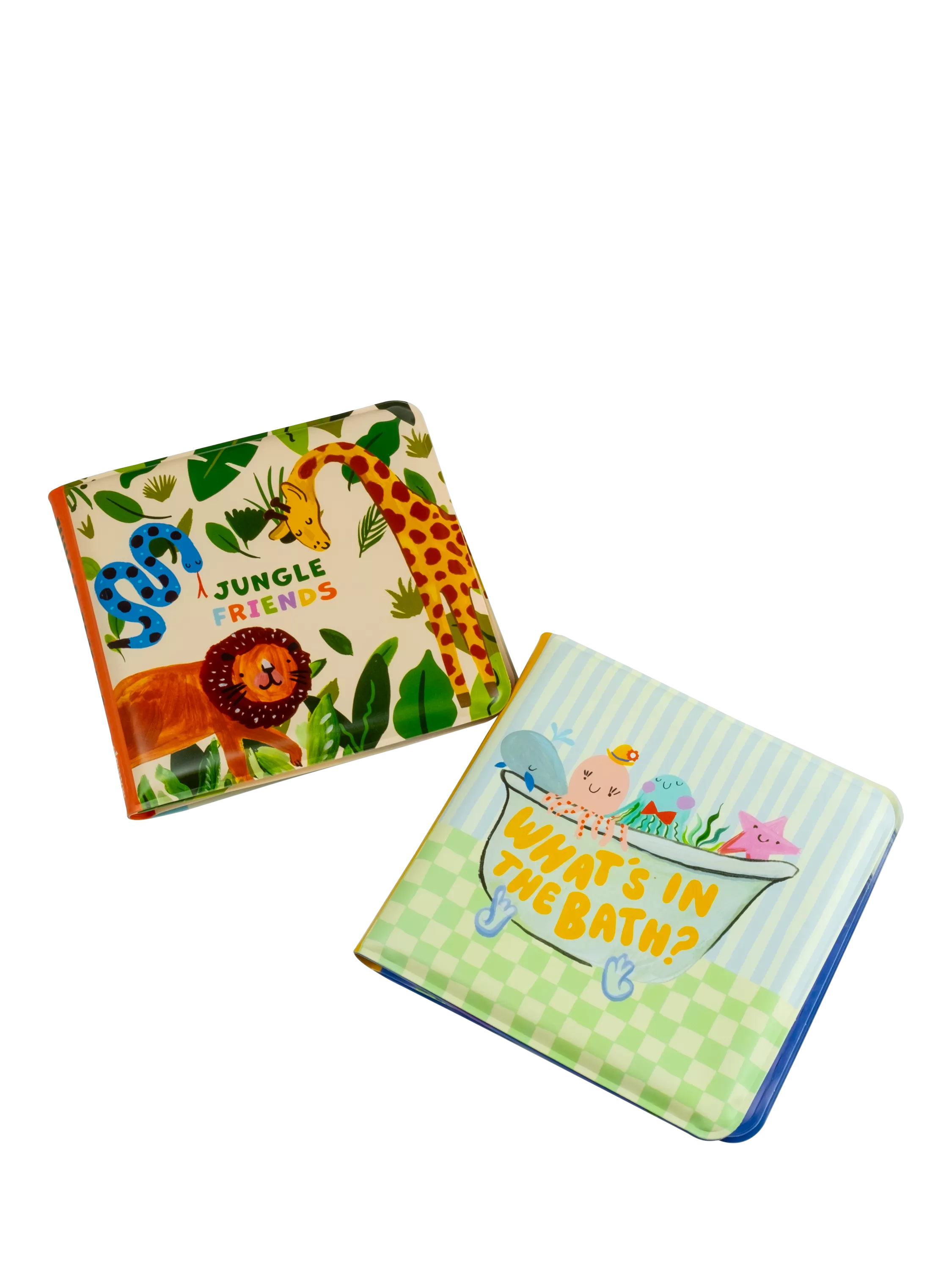 A pack of 2 fun baby bath books; jungle and sea-themed books designed by Eleanor Bowmer. They are presented in a printed box.