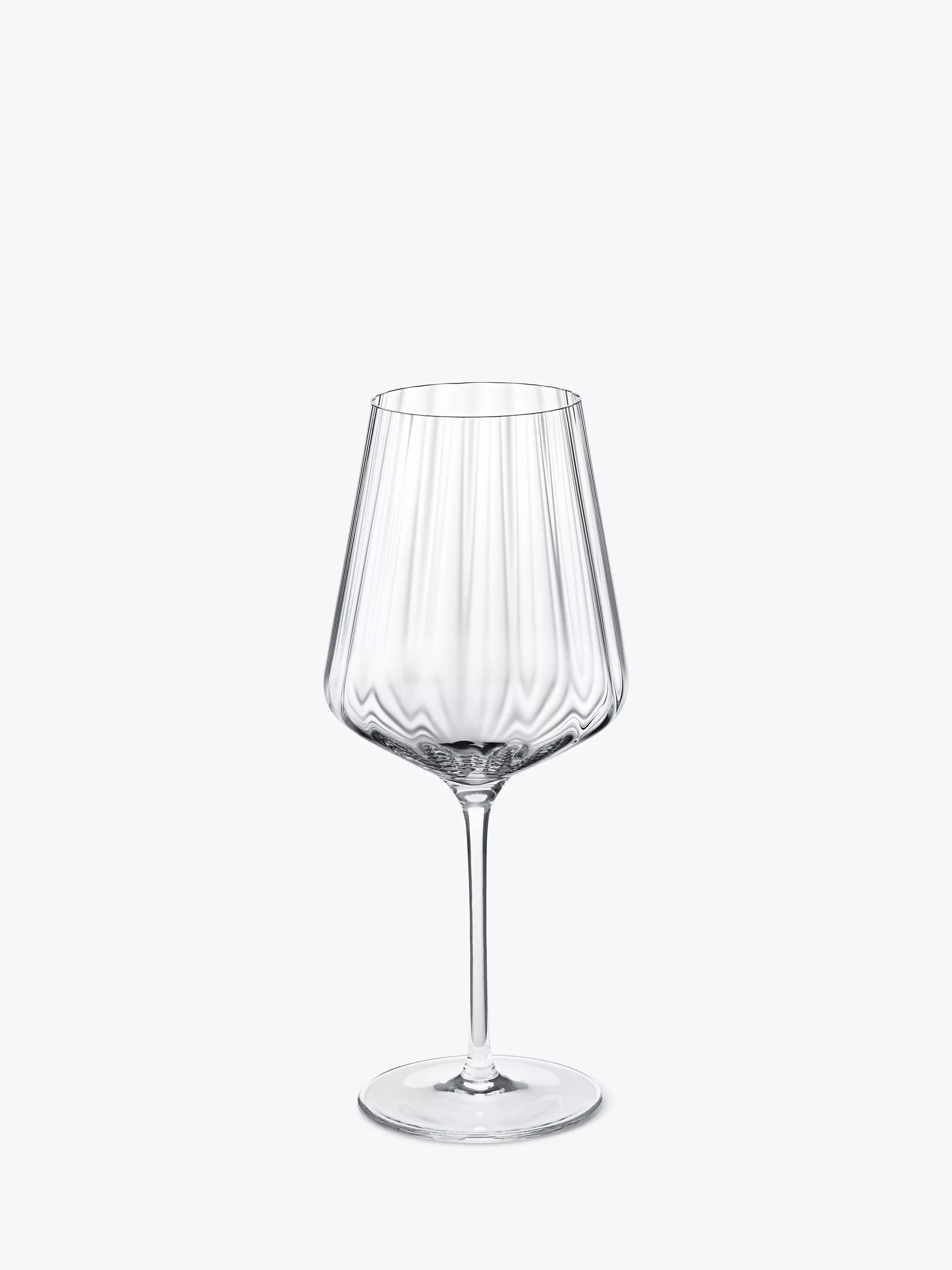 The signature grooved detail that features on many Georg Jensen Art Deco pieces is used on these six lead-free crystal white wine glasses. It's a detail that catches the eye with the added functional benefit of adding grip so they can be held firmly.