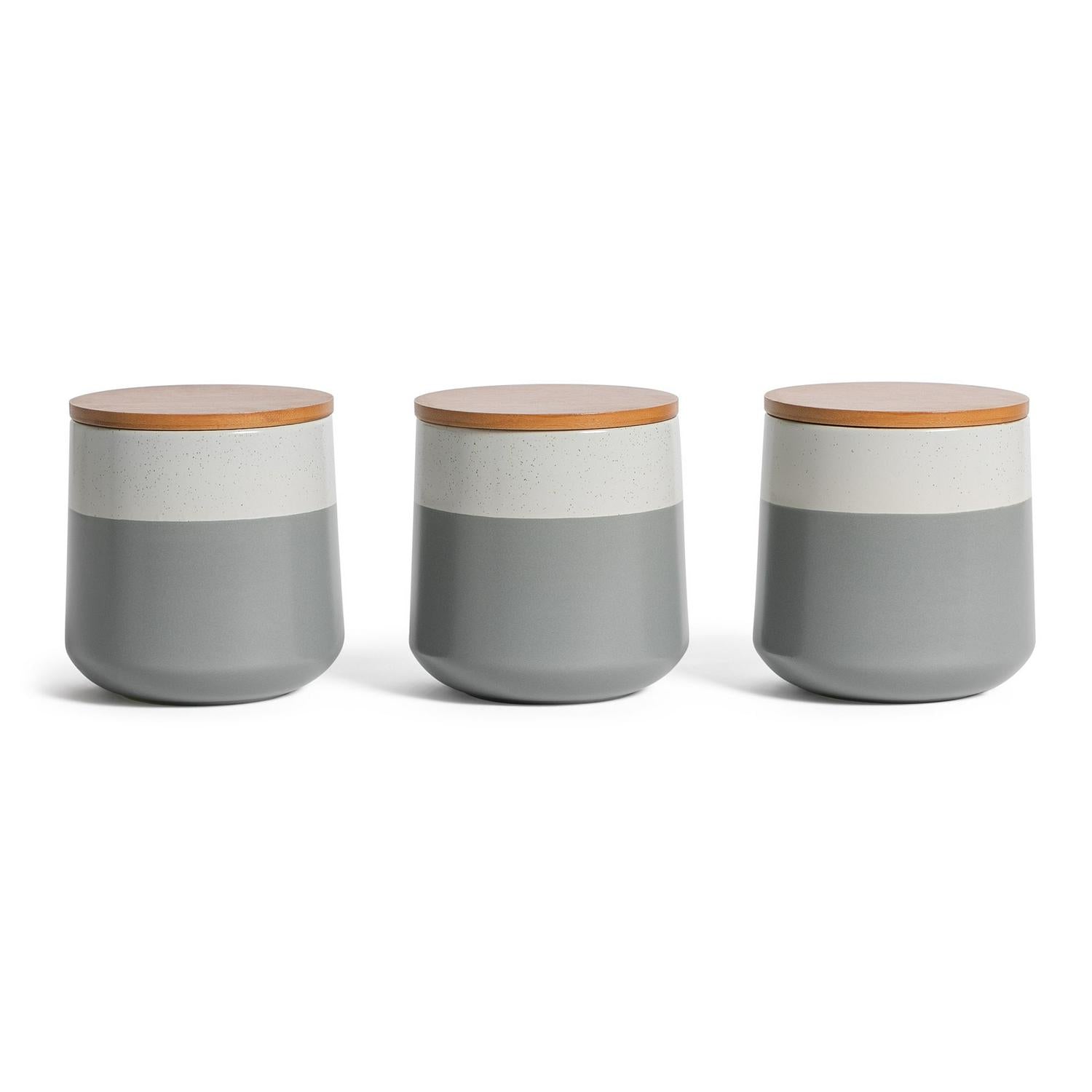 This stoneware canister offers an elegant solution for keeping dry goods fresh in your pantry or on display. Featuring a speckled design in two shades of grey, it provides smart kitchen storage for items like sugar, spices, or pulses. The accompanying bamboo lid is designed with an airtight seal to lock in freshness effectively.