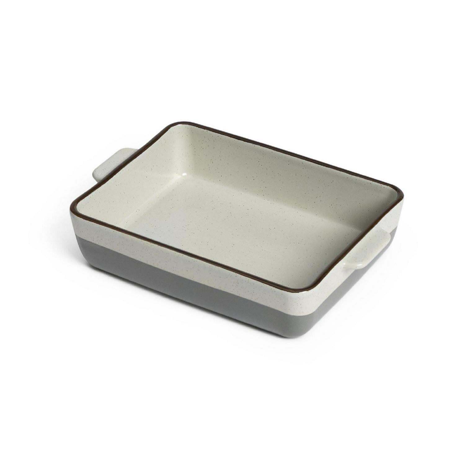 Read MorePicturing the perfect crispy spuds or roast meat? This rectangular ceramic roasting dish will help you produce some mouth-watering results. With a two-tone design, rustic rim and smart speckle finish, it's a good-looking piece of cookware. And it's versatile. Handles make it easy take from oven or microwave straight to the table. It's even freezer proof, how useful is that. A dishy, dish.