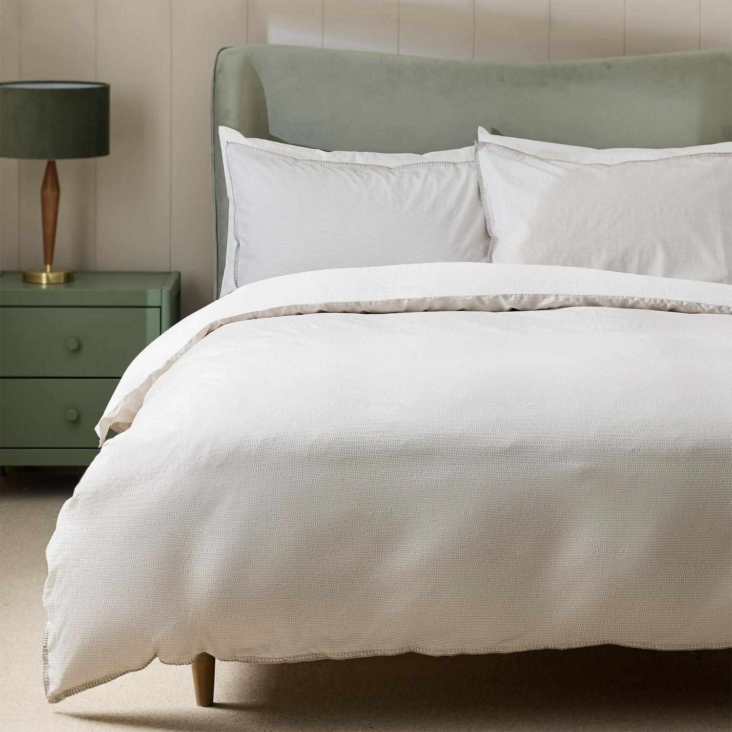 This striped Habitat seersucker bedding set offers visual texture and dimension for your bedroom decor. It features tactile blanket stitching, lending a cosy, rustic aesthetic to your sleeping space.