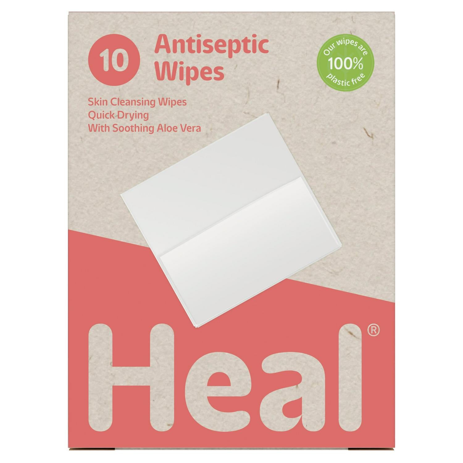 Heal Antiseptic Wipes offer a convenient method for cleansing and disinfecting the skin on the go. This pack contains 10 individual wipes formulated with soothing Aloe Vera for a gentle experience. These skin cleansing wipes are designed to dry quickly after application.