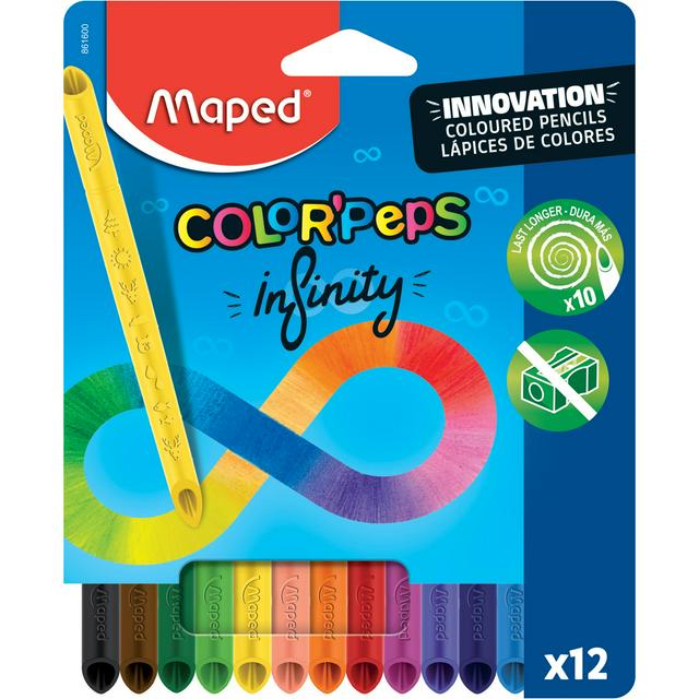 These Helix Maped Colorpeps Infinity Pencils offer an innovative colouring solution designed to last significantly longer than standard options. Thanks to the 100% lead material, these 12 pencils are completely usable, meaning zero waste for responsible creativity.