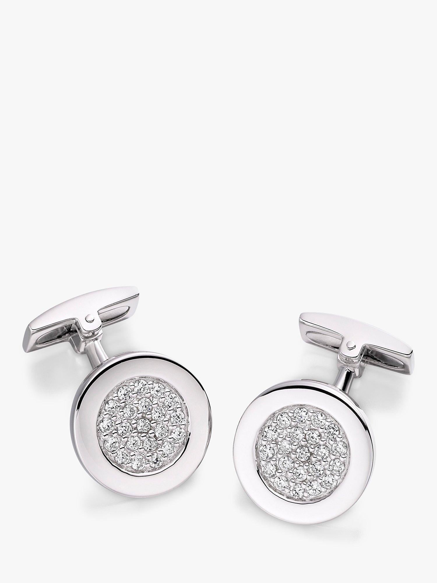 Accented with a eye-catching cubic zirconia detailing, these cufflinks come in a smart and hard-wearing sterling silver.