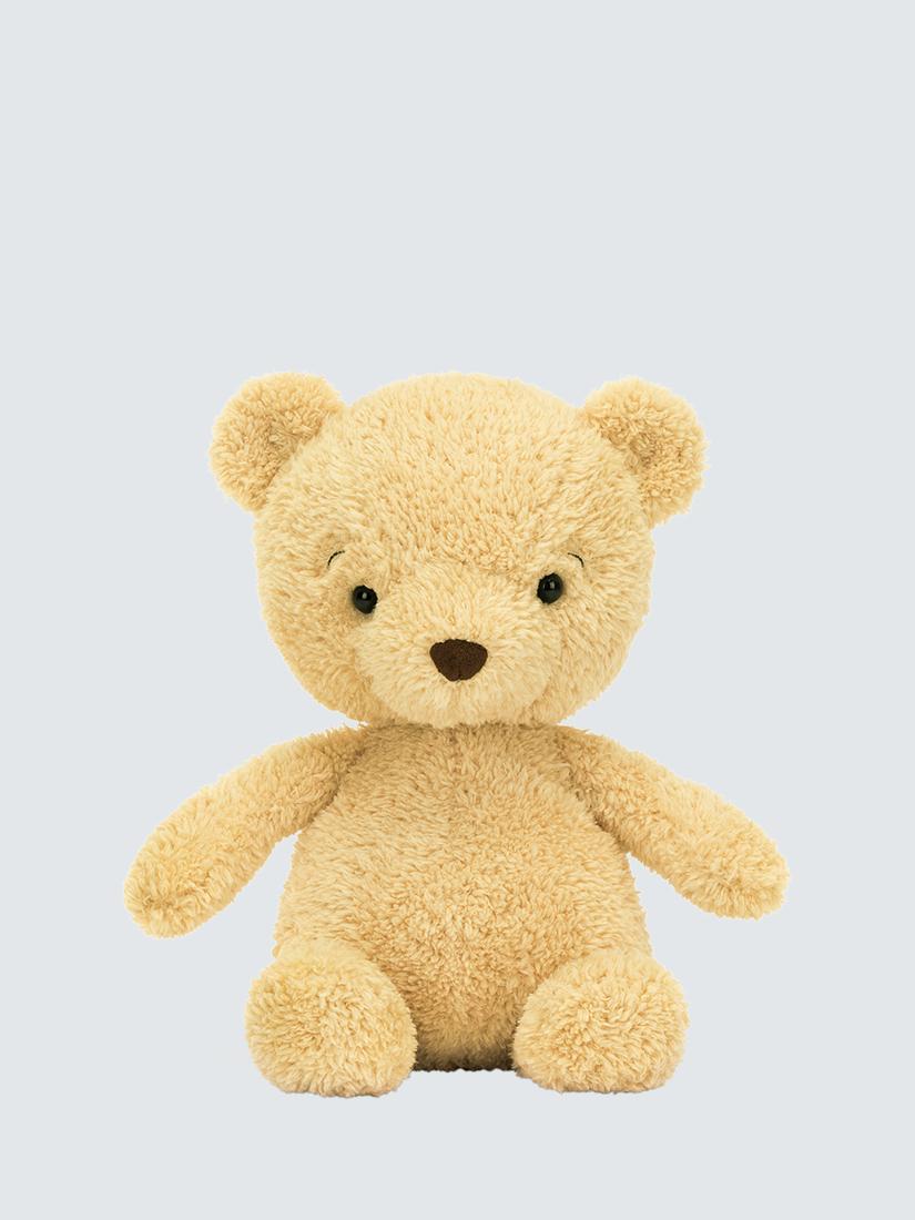 Read MoreRumblikin Bear is a classic cutie in textured yellow fur. With a tiny suedette nose, cuddly tummy, and sweet, stitched eyebrows, this bear makes a wonderful cuddle companion just look at those little arms wide for hugging!
