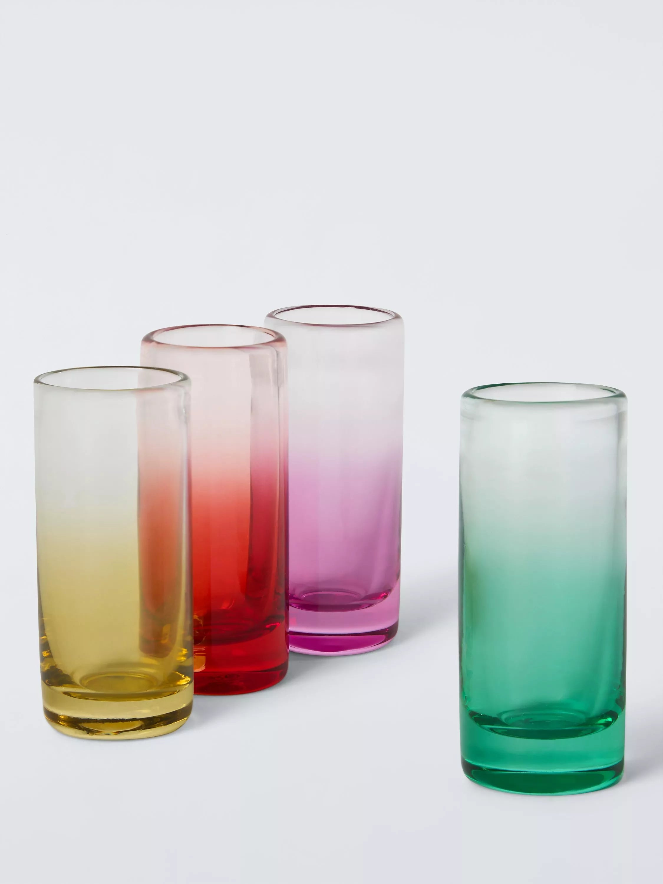 Add a touch of stylish sophistication to your drinks with this set of four ombre shot glasses. These beautifully crafted glasses are perfect for entertaining guests or enjoying a quiet evening at home. Their unique design makes them a great gift or a stylish addition to your barware collection.