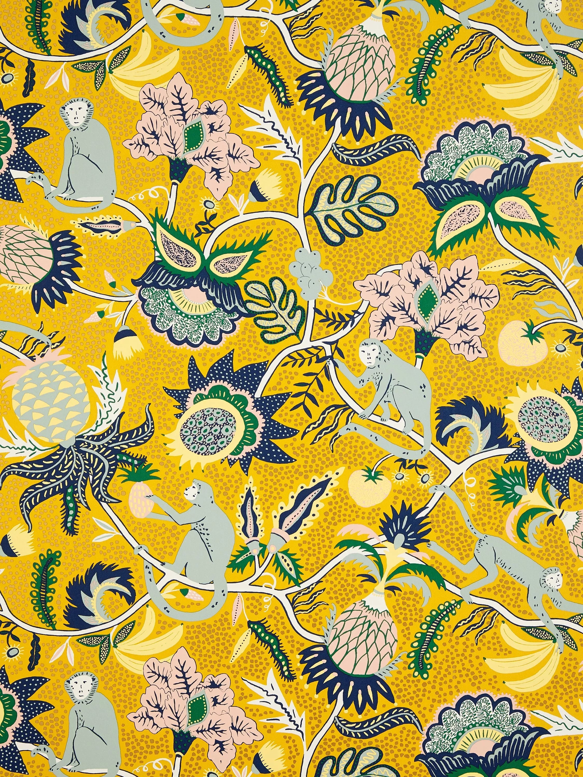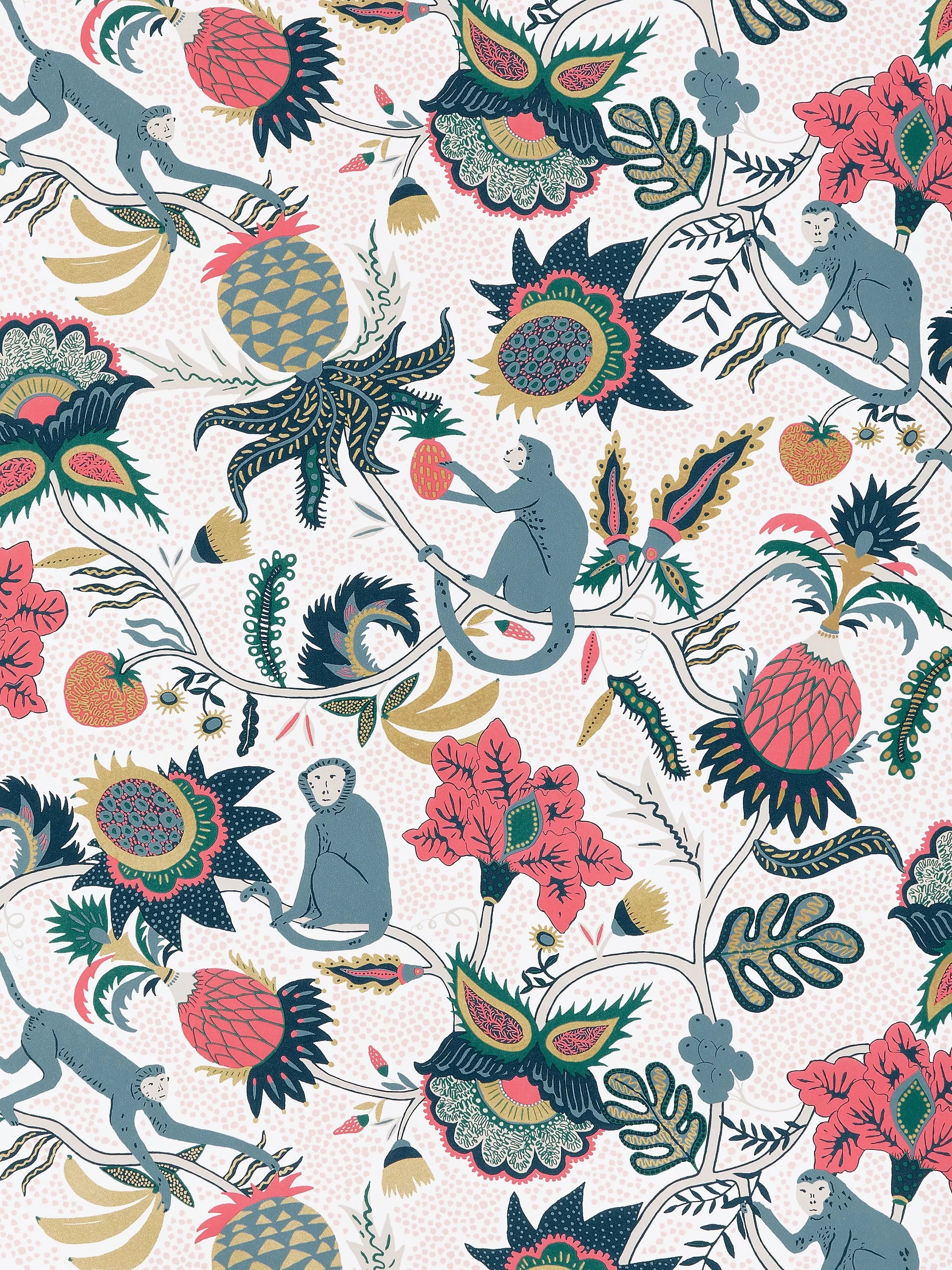 This eclectic design was inspired by Frida Kahlo's rich and colourful heritage and her many beloved monkey pets. This paper has beautiful metallic highlights within the print.
