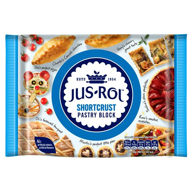 This Jus-Rol chilled dough offers a convenient foundation for creating various homemade baked goods. The shortcrust pastry block arrives uncooked, streamlining preparation for your favourite recipes like pies and tarts. This product is made without any artificial colours or added flavours for a clean base.