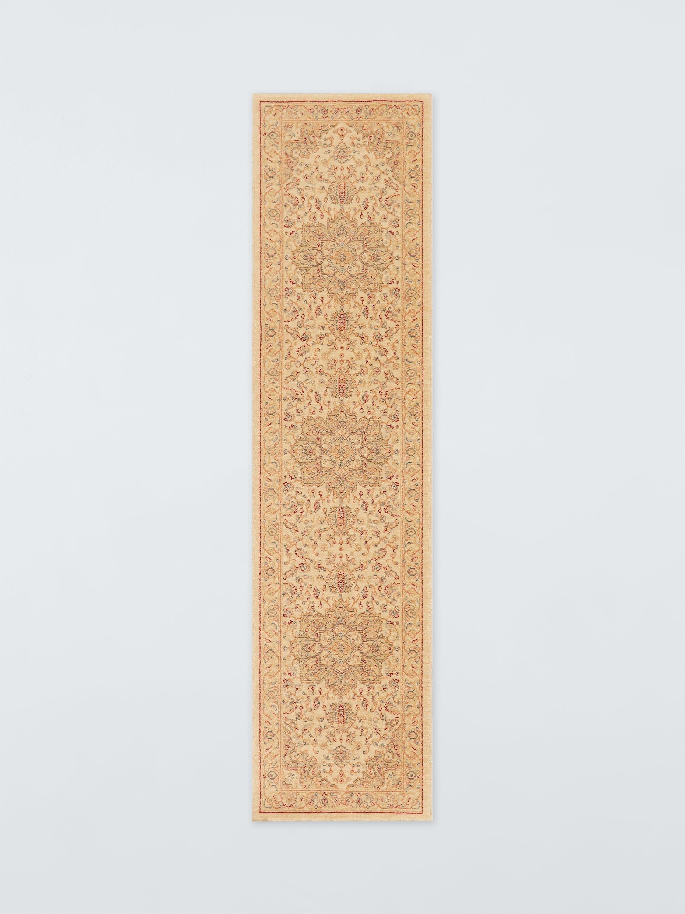 The Kabir Medallion Star Runner, L275 x W67 cm, showcases a beautiful, traditional design inspired by majestic patterns for an elegant floor accent. Woven using pure wool, this runner provides an indulgent softness underfoot while remaining inherently strong and durable. It is perfectly suited for enhancing hallways and living spaces throughout your home.