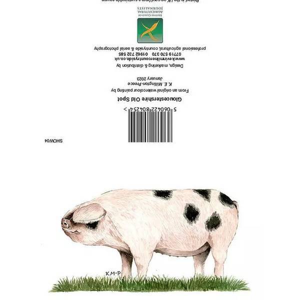 Material: Card. Length: 6in. Width: 4in. Design: Gloucestershire Old Spot, Grass, Pig. Packaging: Paper Envelope.