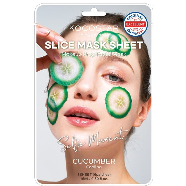 - irritating and safe for people with sensitive skin to use. Kocostar Cucumber Slice Mask boasts an impressive 10,000 ppm of cucumber extract, packed with Vitamins A & C, soothes, refresh and comfort your skin with intensive hydration and a luxurious feel. Combined with enriching aloe vera, allantoin, arginine and glycerin extract to soothe and restore, and cactus, salicornia, reed and flower extract to calm
