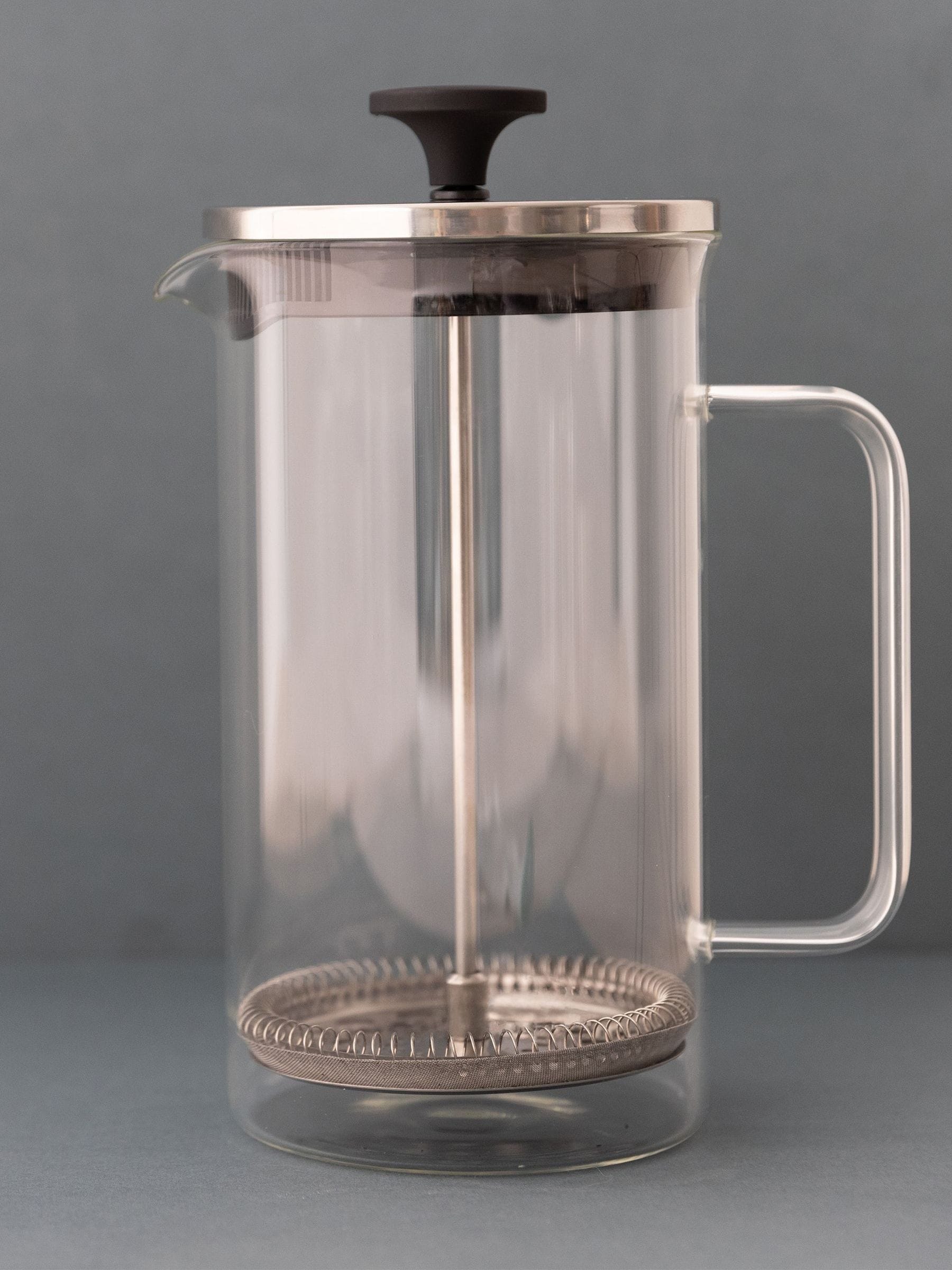 If you like simple, modern style, you'll love this borosilicate glass French press from La Cafetière. With its clean, sophisticated silhouette and looping handle, it will add a sense of understated elegance to your coffee table. Most impressive of all, however, is its perfectly clear all-glass beaker. With minimal metal detailing, it makes your coffee the centre of attention, so you can watch as it swirls and brews through the glass. And once it's brewed? Expect to enjoy delicious cup after delicious cup. This glass coffee cafetiere is fitted with a reusable, rust-resistant stainless steel filter. Its fine mesh extracts flavour while keeping grounds contained, so every sip is smooth and delicious. Friends can share the experience, too. The cafetiere has a 1 litre (1.5 pint) capacity, which equates to eight small coffee cups or around three full mugs. Like all La Cafetière products, it's built to last, with a borosilicate glass beaker and stainless steel lid and filter. The glass is thermal shock tested for worry-free use, and the stainless steel is rust and odour resistant, so minimal maintenance is required. The beaker is dishwasher safe, and the metal components disassemble, so cleaning is quick and easy. Comes securely packed in an attractive La Cafetière box for easy gifting. Spare filter included.