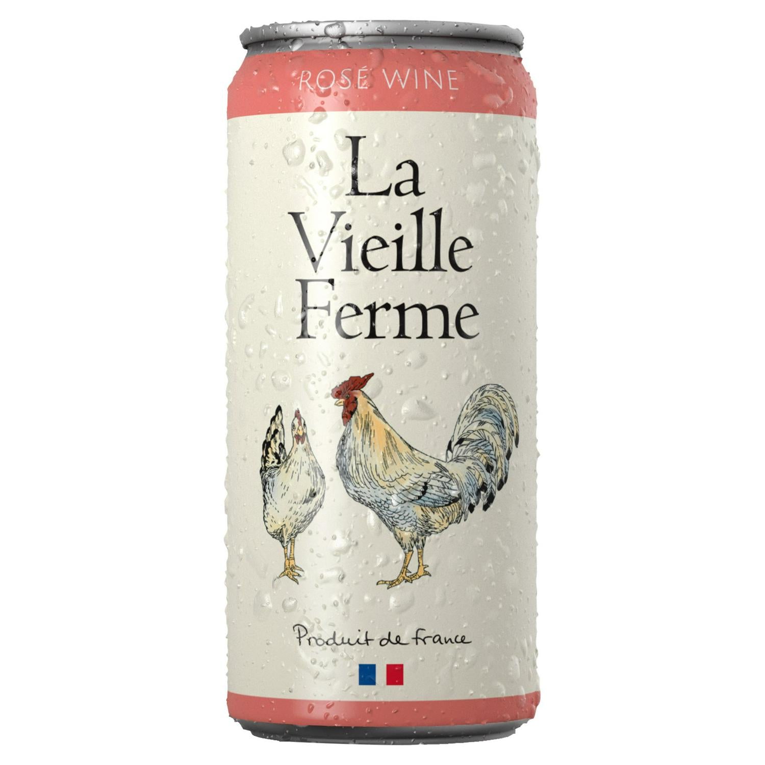 La Vieille Ferme Rosé Wine offers a refreshing French wine experience presented in a highly convenient 20cl can format. This single-serving beverage is sourced from France, carrying the brand's signature rustic charm. Enjoy the light, chilled character of this quality canned rosé wine immediately upon opening.