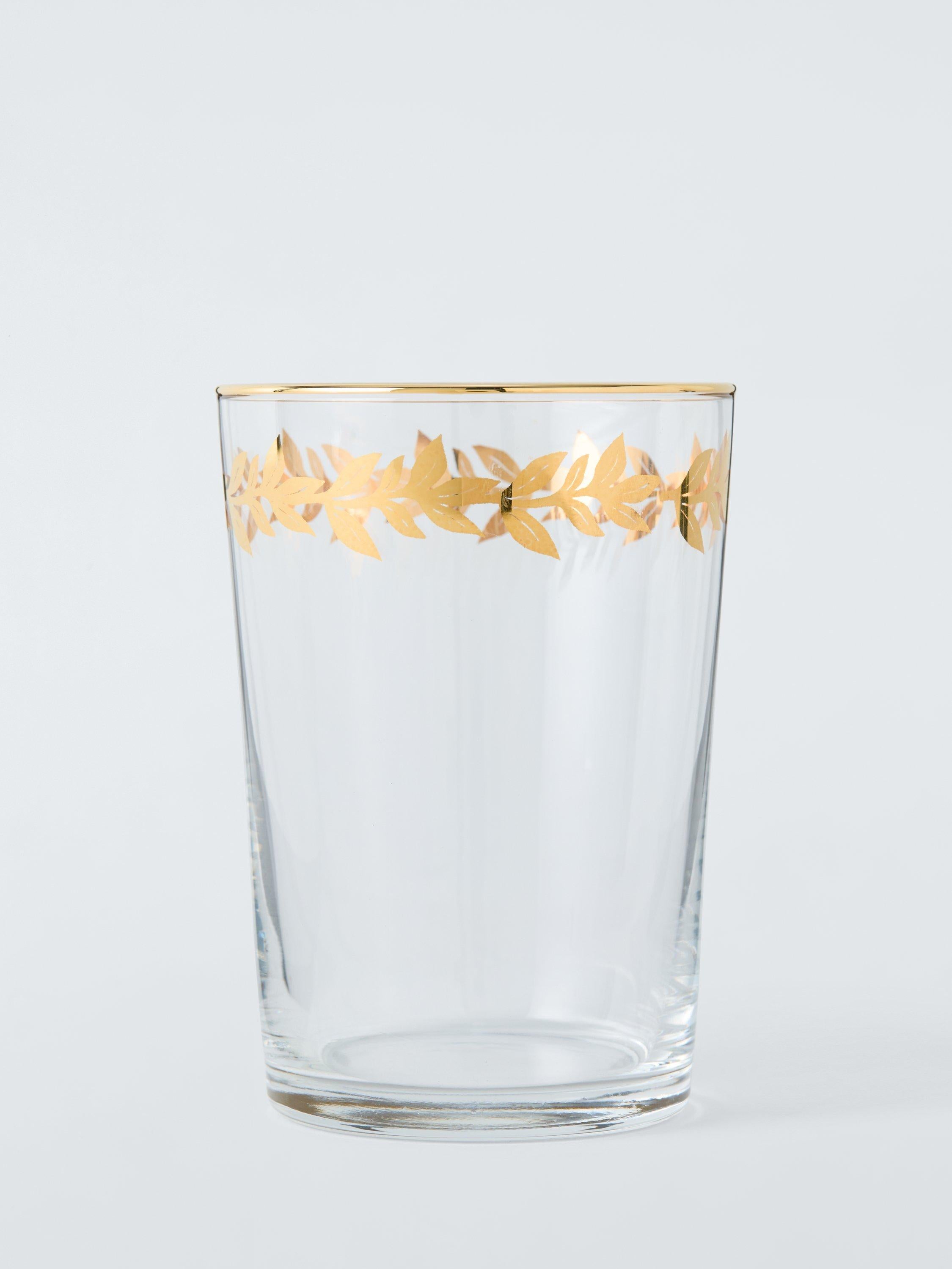 John Lewis presents this elegant Leaf Rim Glass Tumbler, a substantial 500ml clear drinking vessel perfect for special dining moments. Featuring refined gold detailing and a lovely leaf pattern, this glassware adds a touch of luxury to any table setting or drinks service. It is ideal for serving cold beverages with style.