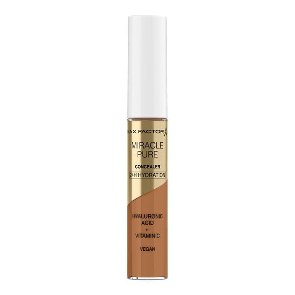 Read Morebelieve in miracles inspired by skincare mastered by max factor new miracle pure concealer is clinically proven to care for skin while you wear it the lightweight formula contains hyaluronic acid vitamin c and peptides it gives medium natural coverage and works perfectly on the face and under the eyes providing creaseless all day gentle coverage illuminating brightening and giving 24hydration clinically and dermatologically tested suitable for sensitive skin with a super soft flexible and precise applicator available in 8 shades and designed to work in harmony with max factors miracle pure foundation