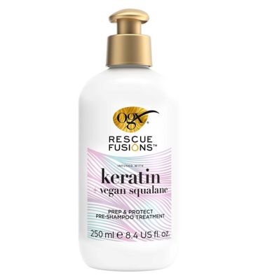 This OGX Rescue Fusions treatment prepares and protects your hair before cleansing commences. Formulated with potent Keratin and hydrating Vegan Squalane, it offers deep nourishment to stressed strands. This specialized product is designed to manage hair health effectively prior to shampooing.