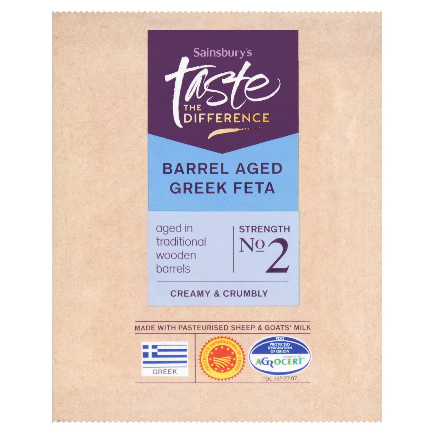 This Sainsbury's Taste the Difference Feta is a Protected Designation of Origin (P.D.O.) cheese matured through a distinctive process. It achieves a balance of textures, presenting itself as both creamy and satisfyingly crumbly. This traditional preparation method involves ageing the cheese within wooden barrels, imparting depth to its flavour profile.