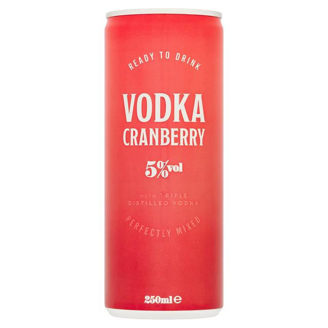 This convenient alcoholic mixed drink combines smooth vodka with tart cranberry juice from concentrate. It is crafted using triple distilled vodka, offering a balanced and ready-to-drink refreshment option for immediate enjoyment.