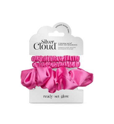 Read MoreElevate your hair game with the vibrant Silver Cloud Fuchsia Scrunchie Set. Featuring one large scrunchie and two skinny scrunchies, all in a bold fuchsia colour, this pack delivers both style and functionality. Infused with cutting-edge silver ion technology and crafted from premium satin, these scrunchies provide a luxurious hair accessory while adding a striking pop of colour to any look.
