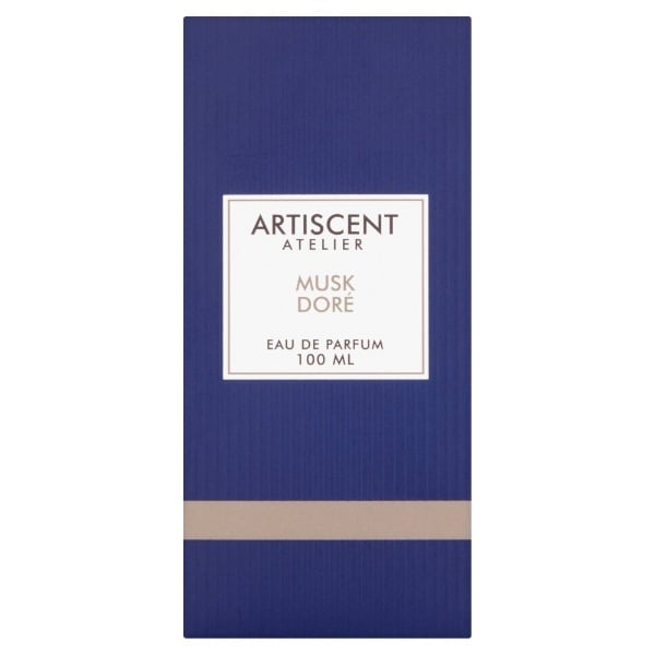Artiscent Atelier Musk Doré Eau de Parfum arrives in a substantial 100ml presentation bottle. This fragrance is classified as an Eau de Parfum, indicating a higher concentration for enhanced longevity. The scent profile centres around rich musk notes, visually suggested by the elegant packaging design.