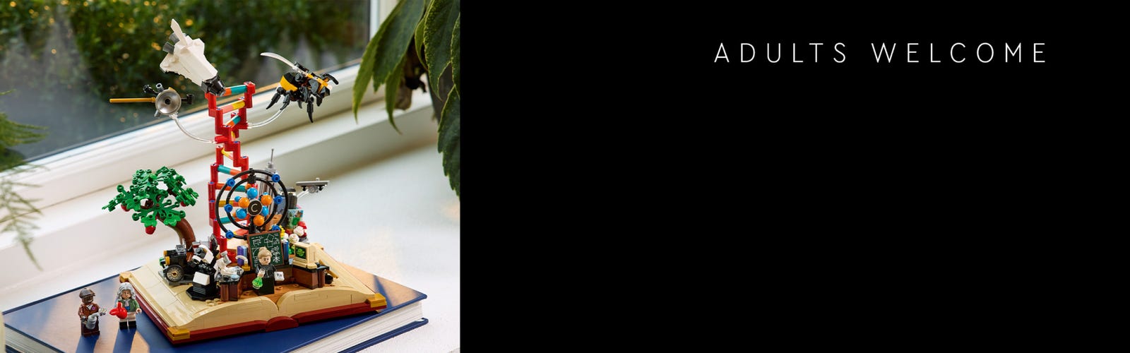 Open a brick-built book on the evolution of STEM (science, technology, engineering and maths) with this LEGO® Ideas collectible display model for adults (21355). An inspiring science gift for women, men and history-lovers, the set features a buildable base in the shape of an open book topped by mini builds that represent historic innovations. Build an early car and a home computer, the NASA Voyager Probe with the Golden Record on board for any extraterrestrial life form that may find it, and much more. Turn the dial to make a 3D replica of a carbon atom float upwards and a DNA strand rotate.