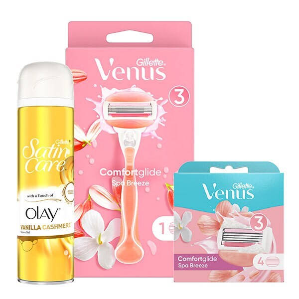 This Venus Spa Breeze Starter Pack provides everything required for achieving a complete, smooth shave experience when at home. It efficiently bundles the essential grooming tools alongside a complementary scented shaving product for maximum convenience and value. Ensure you have all necessary equipment for your upcoming grooming routine with this comprehensive set.