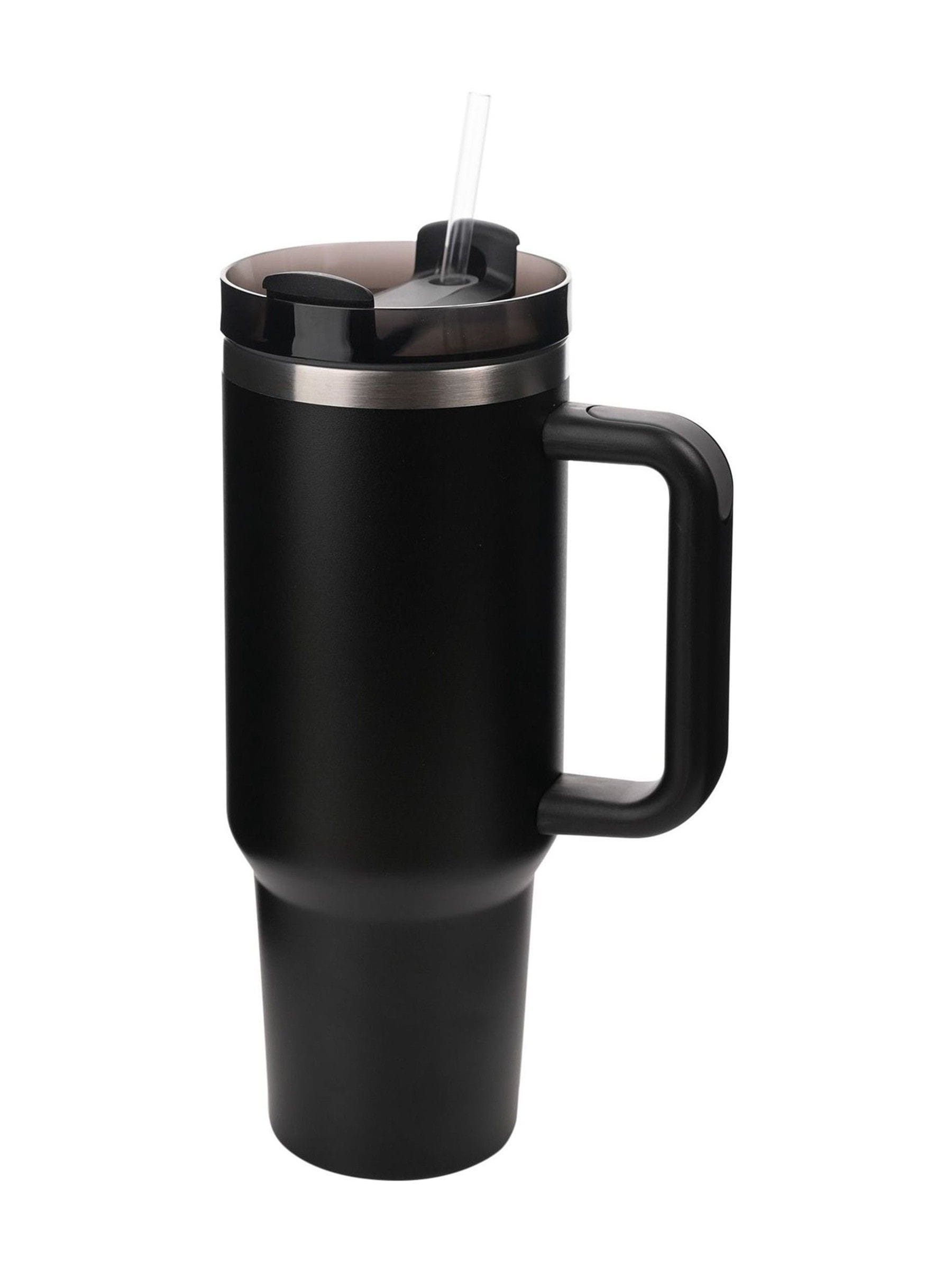 Designed for outdoor enthusiasts and those always on the move, this tall and durable 40oz mug is perfect for hiking, camping, or any activity where hydration is key. It features a sturdy handle and comes complete with a plastic straw for convenient drinking. The sleek black finish paired with silver detailing offers a timeless, modern look—ideal for the style-conscious individual. Size : 0.