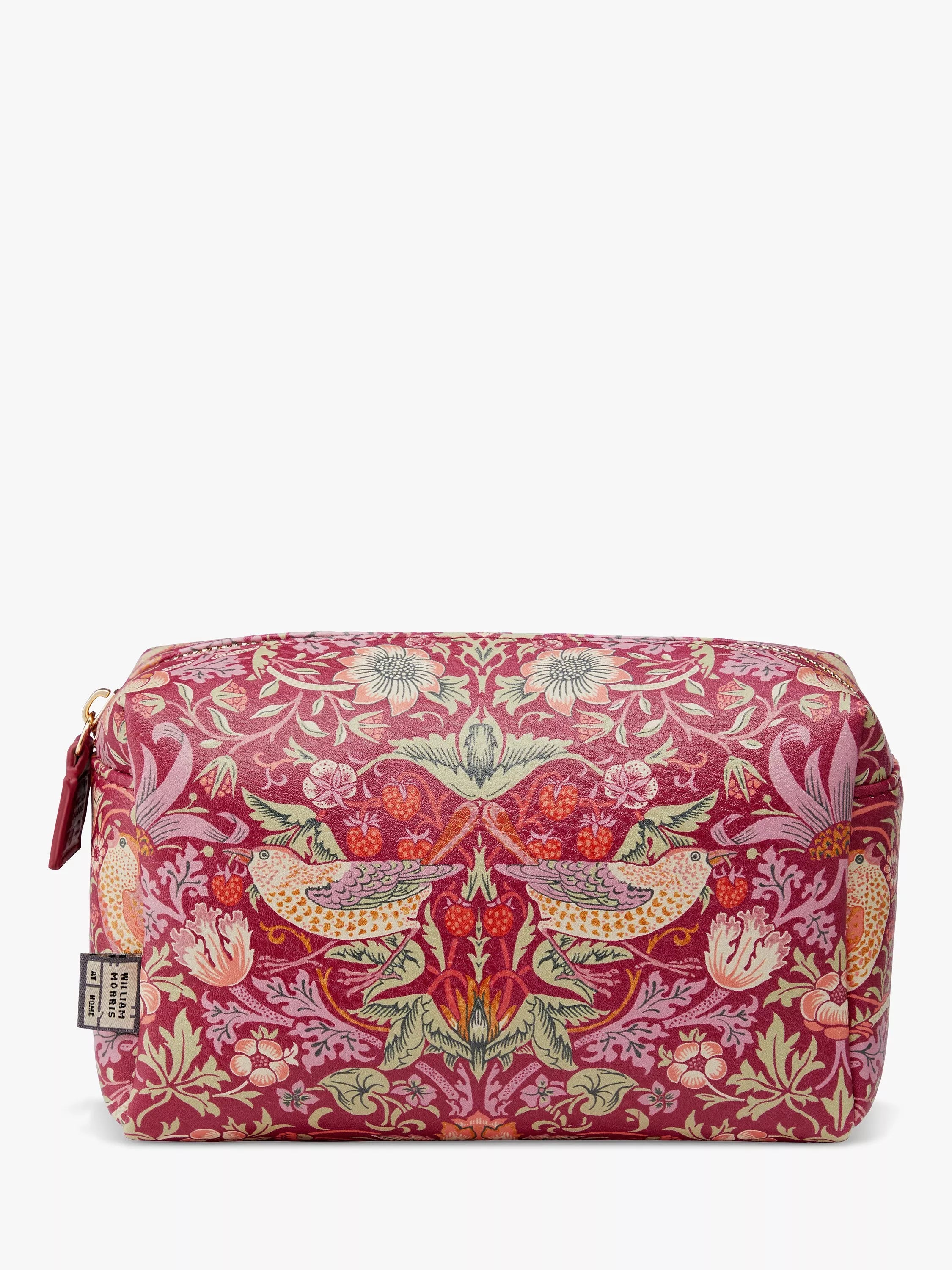 It has a practical, wipe-clean lining made from recycled fabric and is finished with a vegan leather zip-pull embossed with the William Morris at Home logo.