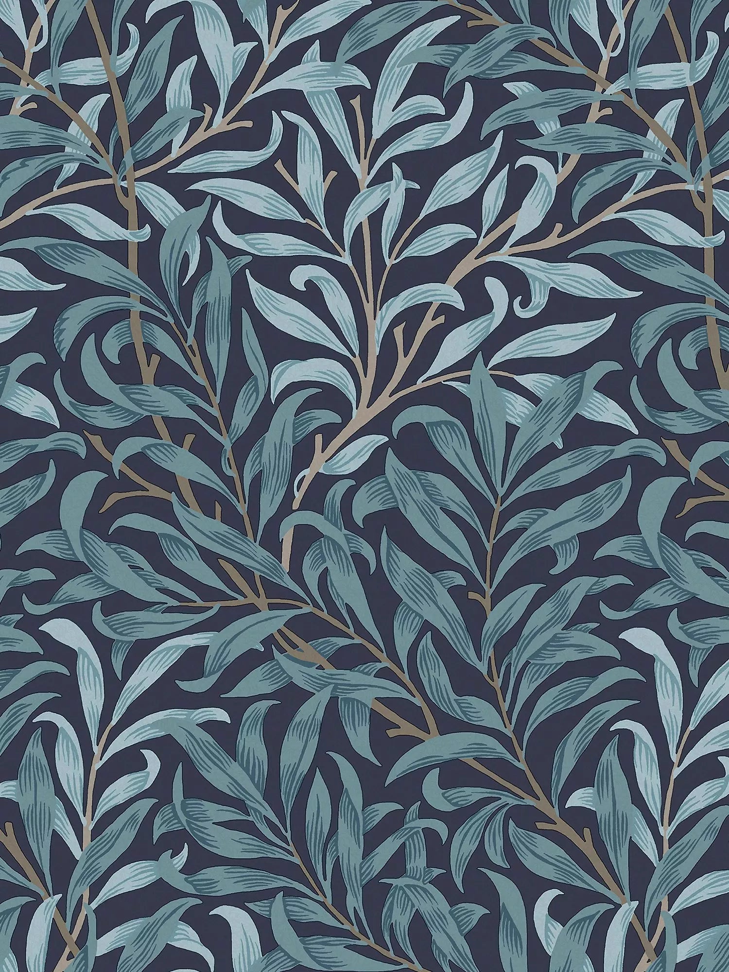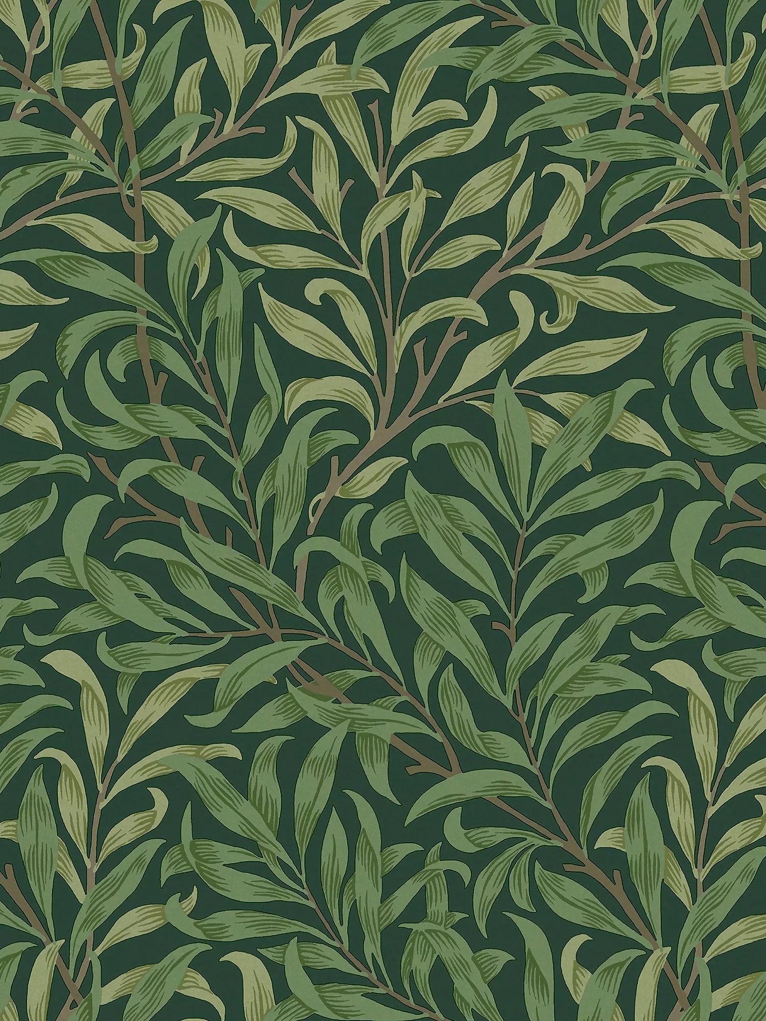 This iconic design is based on the natural willow form which was one of William Morris favourite motifs. Originally designed by William Morris as a wallpaper in 1887 and adapted for fabric in 1895, it is block printed in a diagonal branch pattern at Merton Abbey and combines abstraction with a gentle reminder to the outdoors.