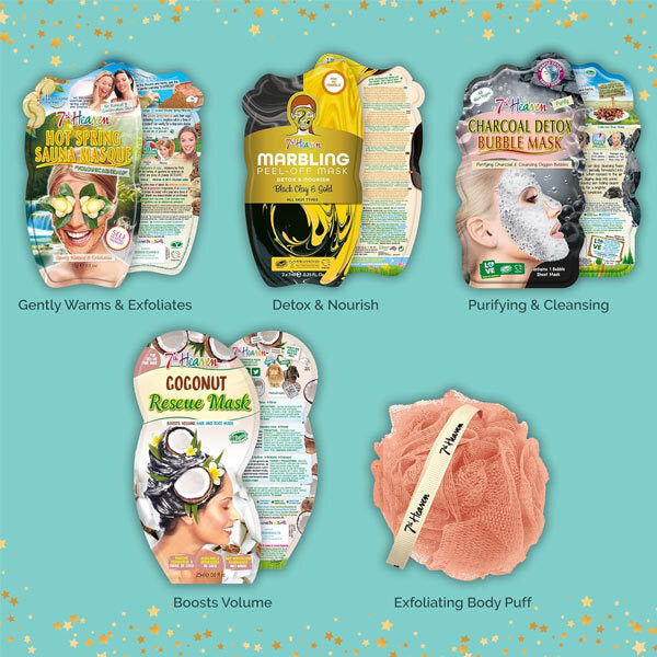 • Includes rejuvenating face masks for targeted skin refreshment.