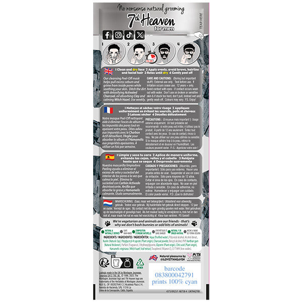 This peel-off mask is formulated to work effectively for men's skin concerns. It is designed to deeply detoxify and purify the complexion using key natural ingredients. This treatment specifically targets congestion and excess shine common in problematic skin types.