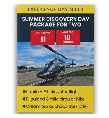 Familiarise yourself with the local beauty-spots with an 8 mile e-guided circular hike around your chosen venue before boarding a VIP helicopter for 6 miles where you will fly along the route you walked, granting a bird's eye view of the sights!