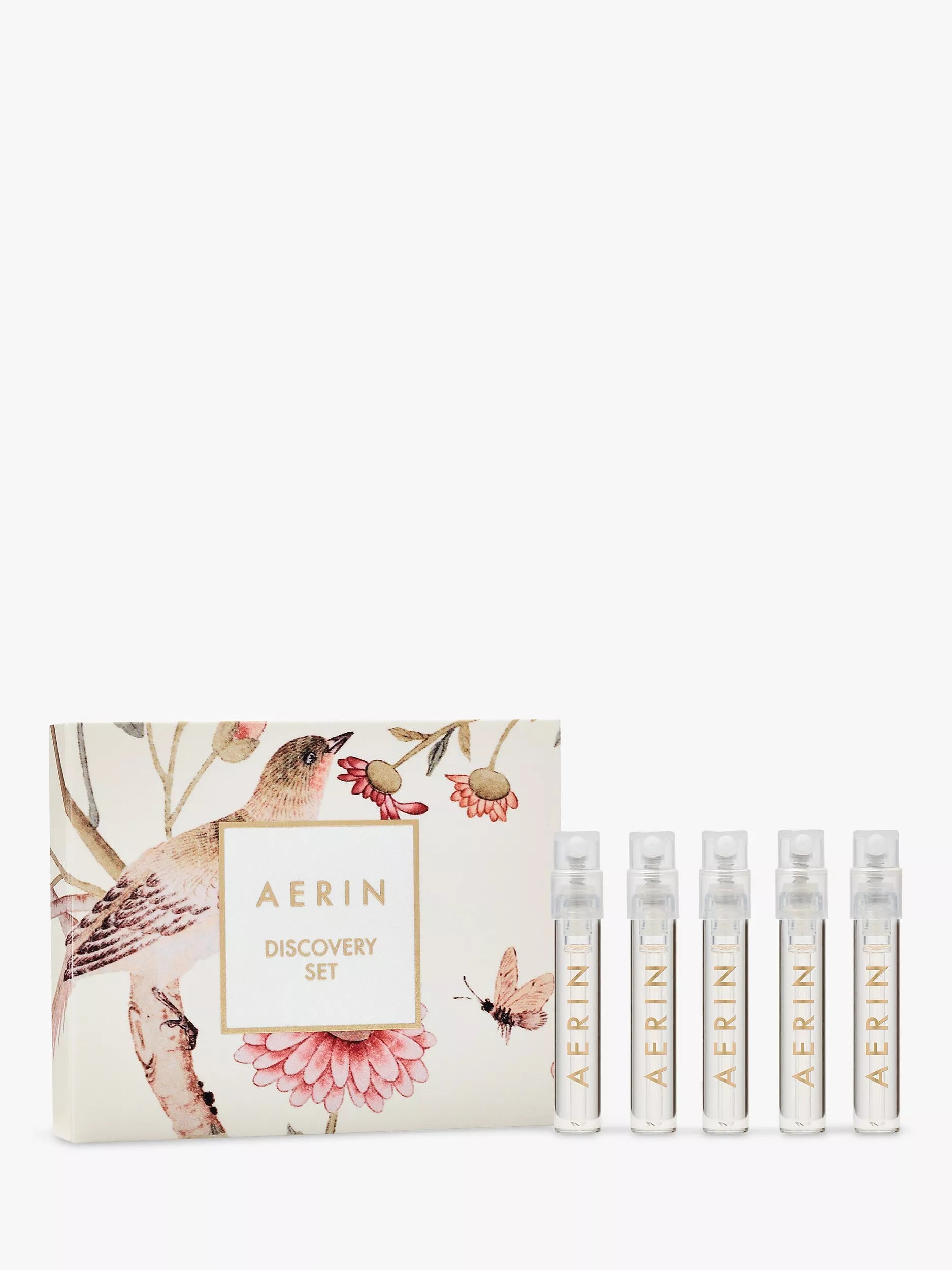 Entdecken Sie die Bestseller-Düfte von AERIN in diesem fünfteiligen Set, präsentiert in einer frühlingshaften Verpackung. Die Kollektion umfasst Mediterranean Honeysuckle, Cedar Violet, Amber Musk, Rose de Grasse und Ikat Jasmine. Sie bietet Düfte für jede Jahreszeit und jeden Anlass in praktischen Mini-Flakons – ideal für unterwegs.