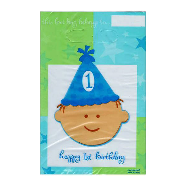 These Amscan party bags are supplied in a convenient pack of eight units, ready for distribution at your celebration event. They are specifically themed for marking a baby boy's first birthday occasion with coordinating visual details. Each bag features a design that includes a printed hat graphic for immediate festive recognition.